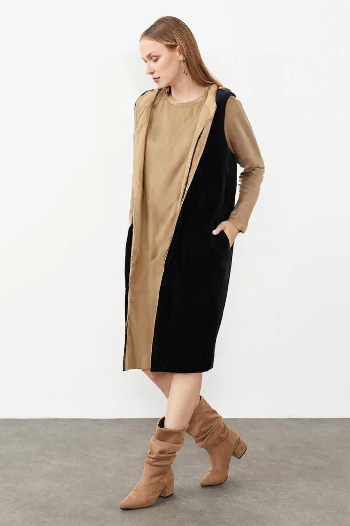 Uzun buklet kumaş zincir detaylı yumuş yumuş kumaş kadın yelek Uzun buklet kumaş zincir detaylı yumuş yumuş kumaş kadın yelek 876 4