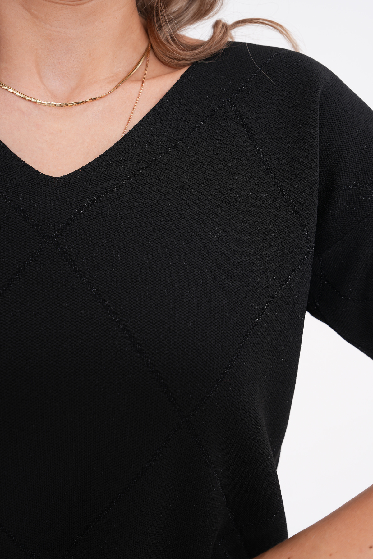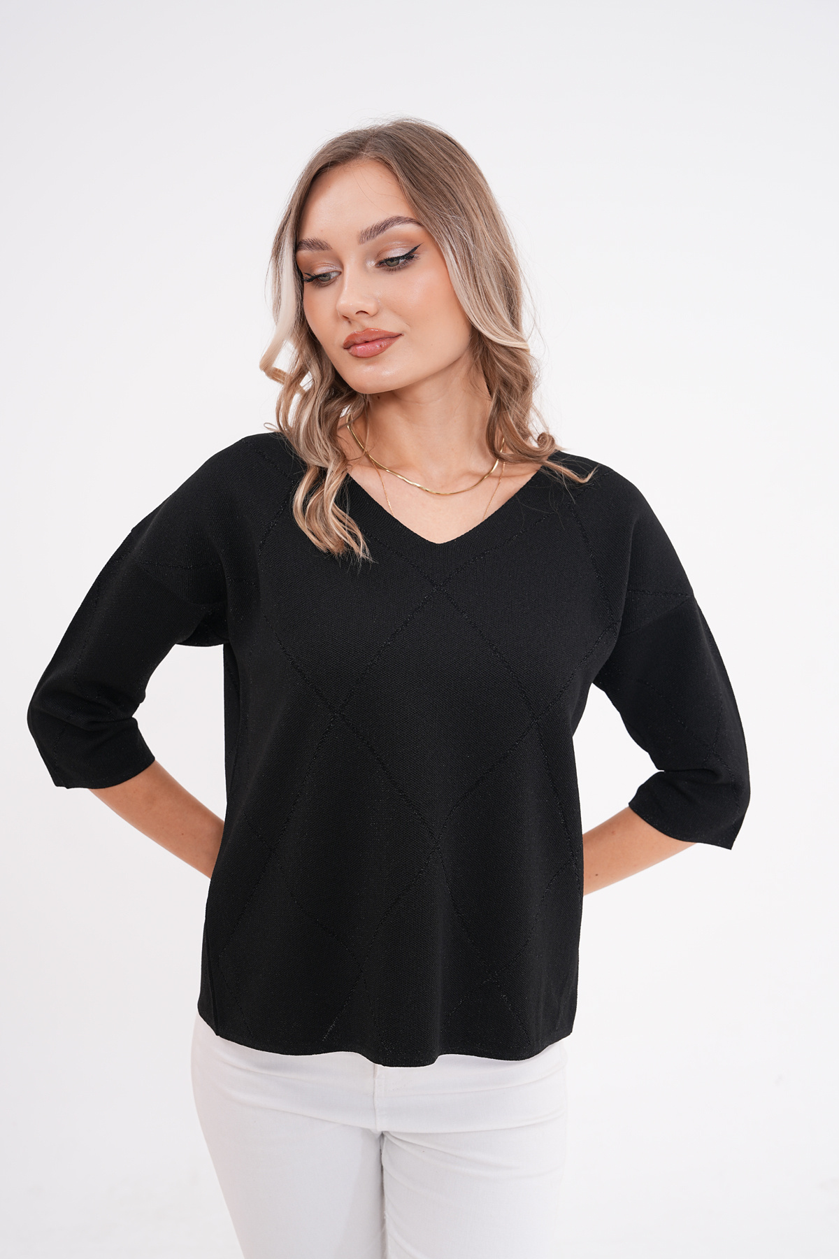 Siyah V yaka Baklava Dilim Desenli İthal İplik Örme Triko Siyah V yaka Baklava Dilim Desenli İthal İplik Örme Triko Mdlv24370312 Standart