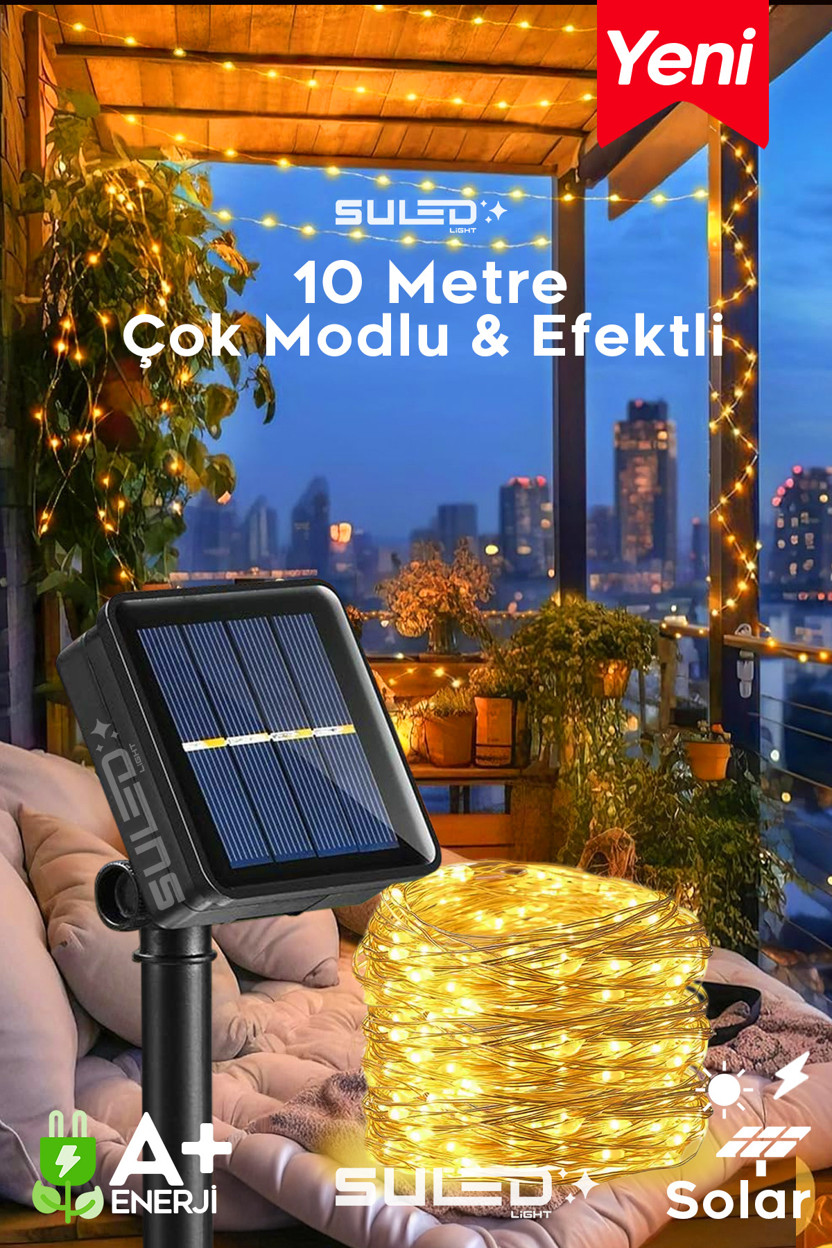 10 Metre Solar Enerjili Dekoratif 100 Led Işık Bahçe Balkon ve Süsleme Ledleri Gün Işığı 10 Metre Solar Enerjili Dekoratif 100 Led Işık Bahçe Balkon ve Süsleme Ledleri Gün Işığı SULED100LED10M تک سایز