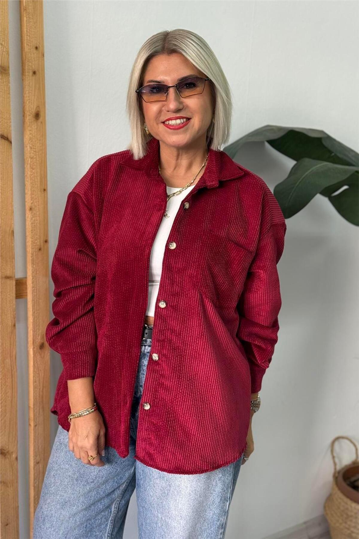 Bordo %100 Pamuk 21 Fitilli Kadife Çıt Çıtlı Çift Cepli Kadın Oval Gömlek @trieste Bordo %100 Pamuk 21 Fitilli Kadife Çıt Çıtlı Çift Cepli Kadın Oval Gömlek @trieste SP24WODMCE02163 42