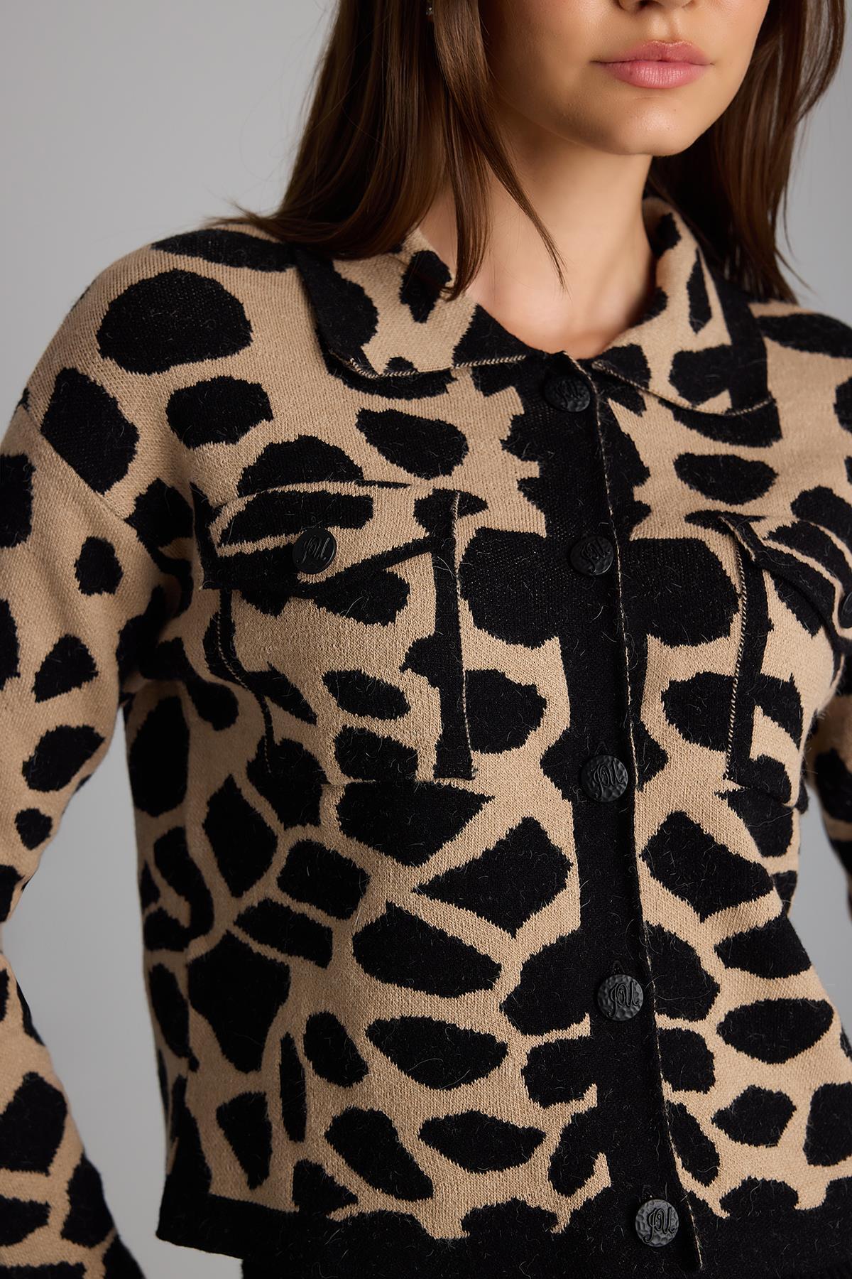 Zürafa Desenli Cepli Siyah Triko Ceket Zürafa Desenli Cepli Siyah Triko Ceket 2425W072800 L