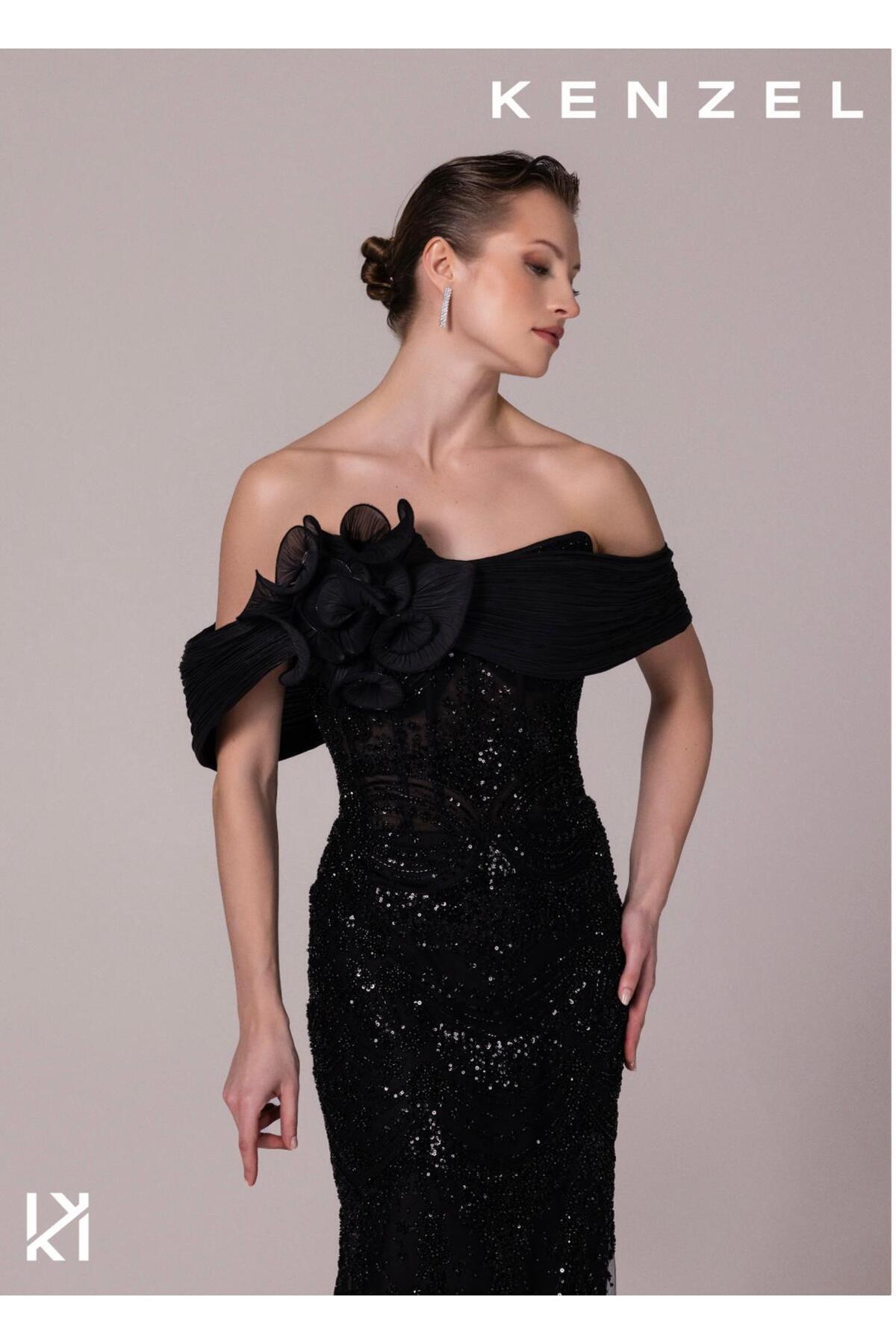 Omuz Detaylı Drapeli Yırtmaçlı Uzun Elbise Omuz Detaylı Drapeli Yırtmaçlı Uzun Elbise KENZEL*7109 44