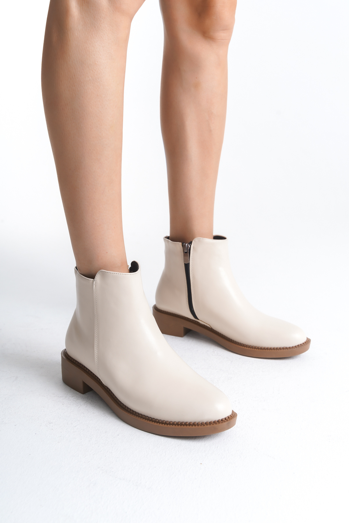 Kadın Perry Bej Cilt Klasik Düz Kısa Bilek Bot Kadın Perry Bej Cilt Klasik Düz Kısa Bilek Bot MRN.ROSSE.65 41