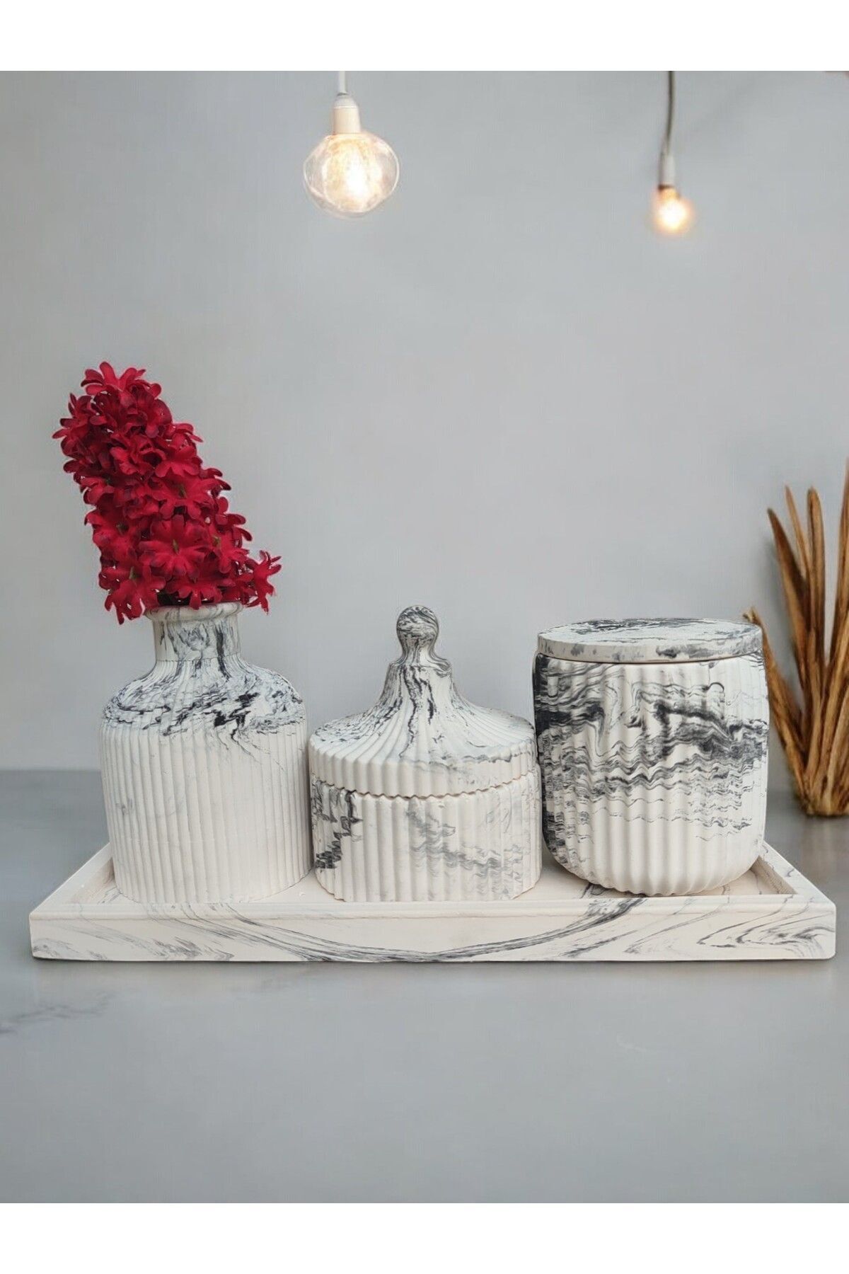 MERMER DESENLİ MUM VE VAZO SETİ - VAZO+ODA KOKUSU+KUBBELİ MUMLUK VE MUM+KİBRİTLİK+YUVARLAK TEPSİ MERMER DESENLİ MUM VE VAZO SETİ - VAZO+ODA KOKUSU+KUBBELİ MUMLUK VE MUM+KİBRİTLİK+YUVARLAK TEPSİ 000023283 تک سایز
