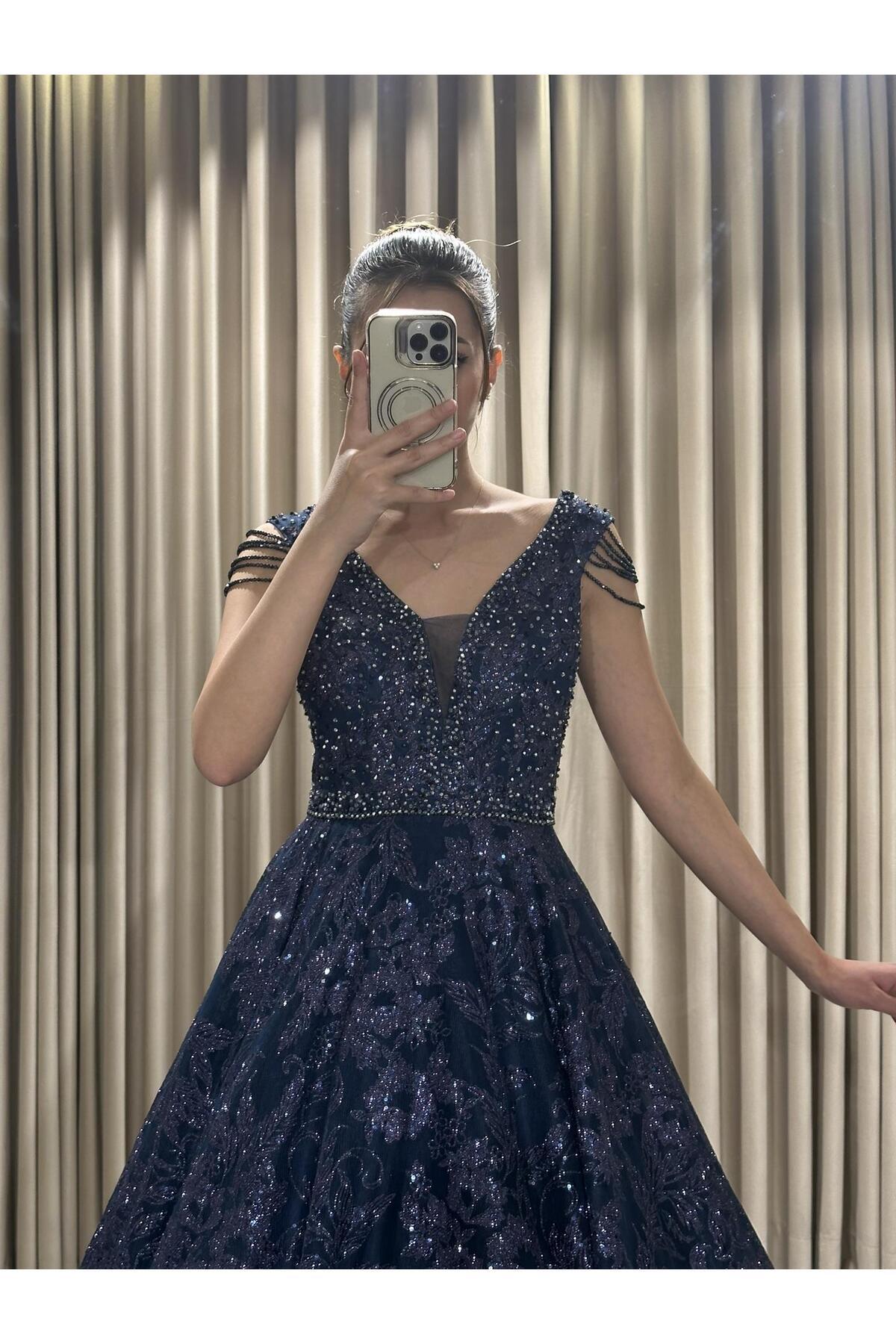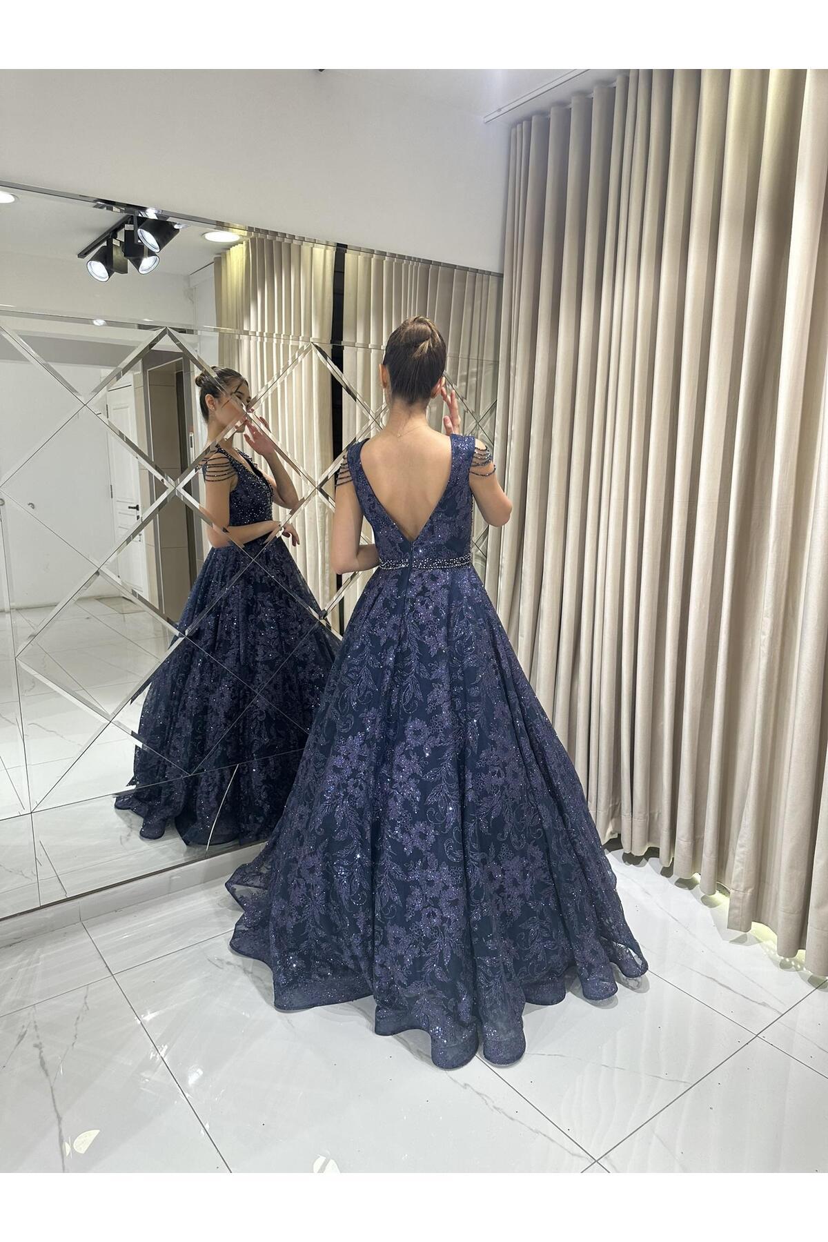 Lacivert Eteği Tül Prenses Model Önü Taş İşlemeli V Yaka Sim Baskı Nişan Abiye Elbise APN1088 Lacivert Eteği Tül Prenses Model Önü Taş İşlemeli V Yaka Sim Baskı Nişan Abiye Elbise APN1088 44