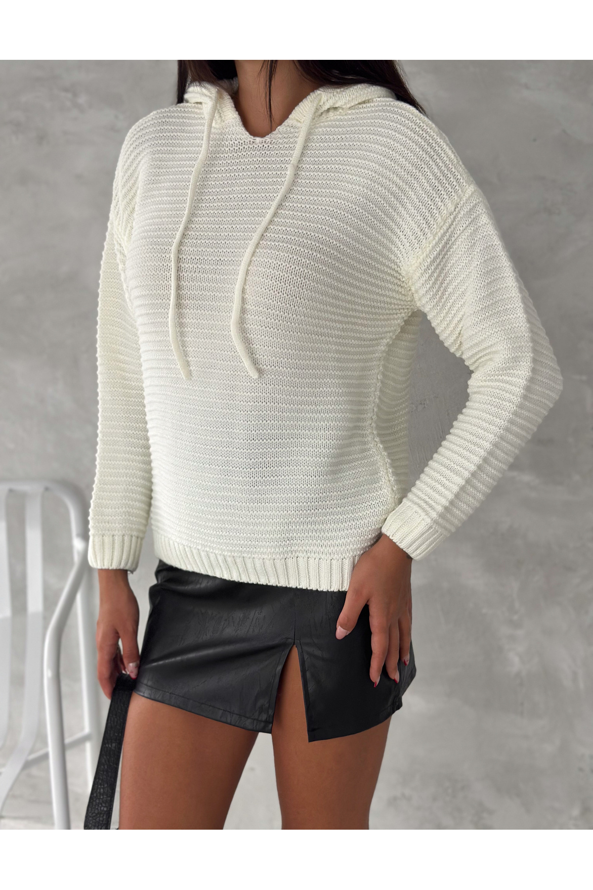 Minimal Örgü Kapüşonlu Triko Kazak Minimal Örgü Kapüşonlu Triko Kazak fm1550 Standart