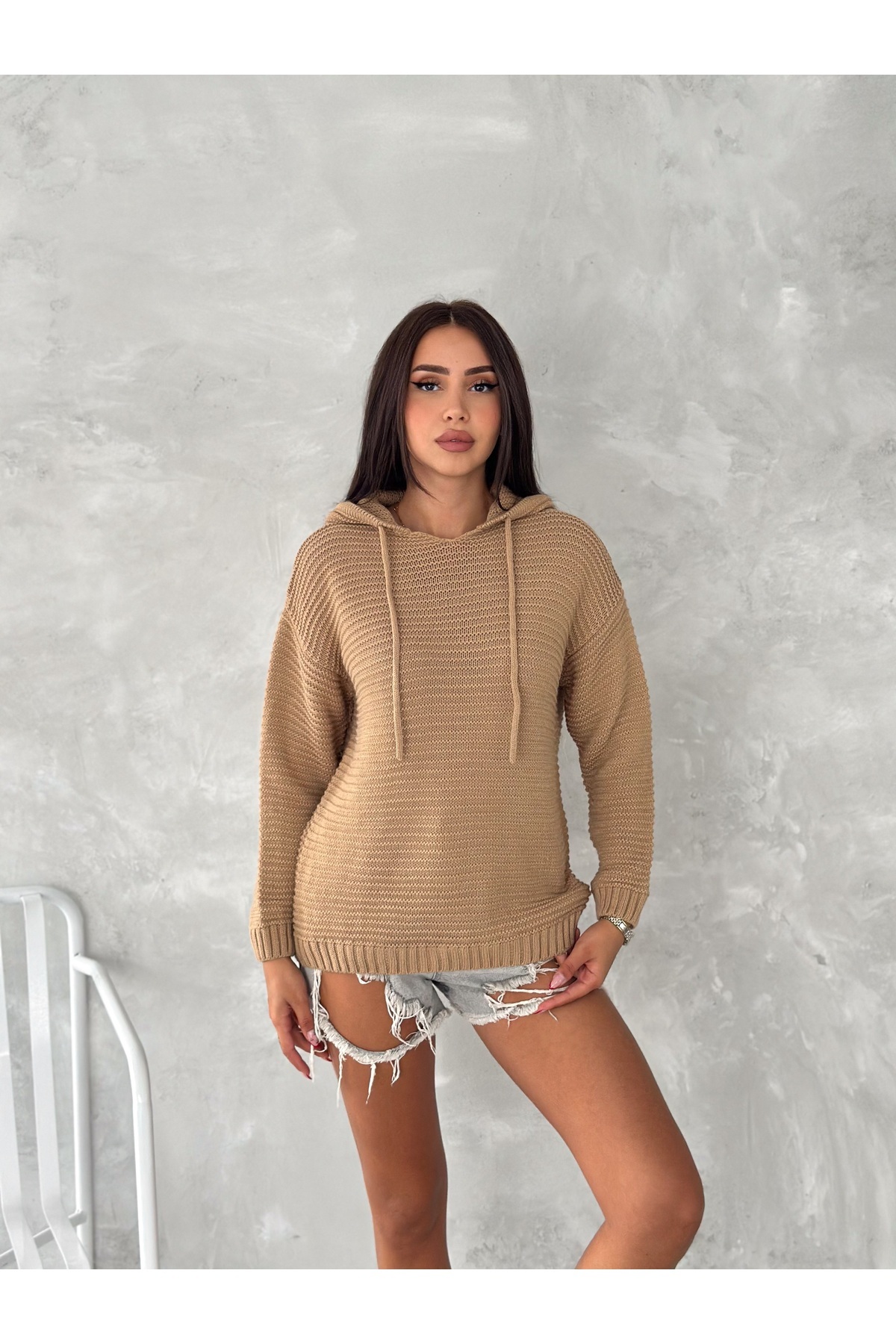 Minimal Örgü Kapüşonlu Triko Kazak Minimal Örgü Kapüşonlu Triko Kazak fm1550 Standart