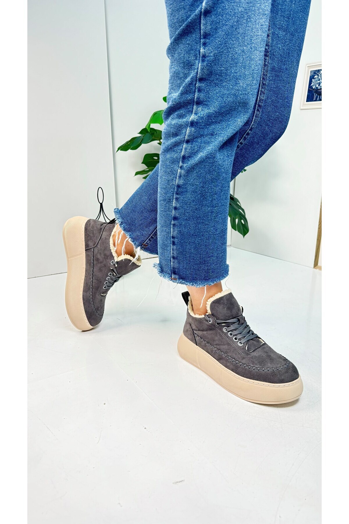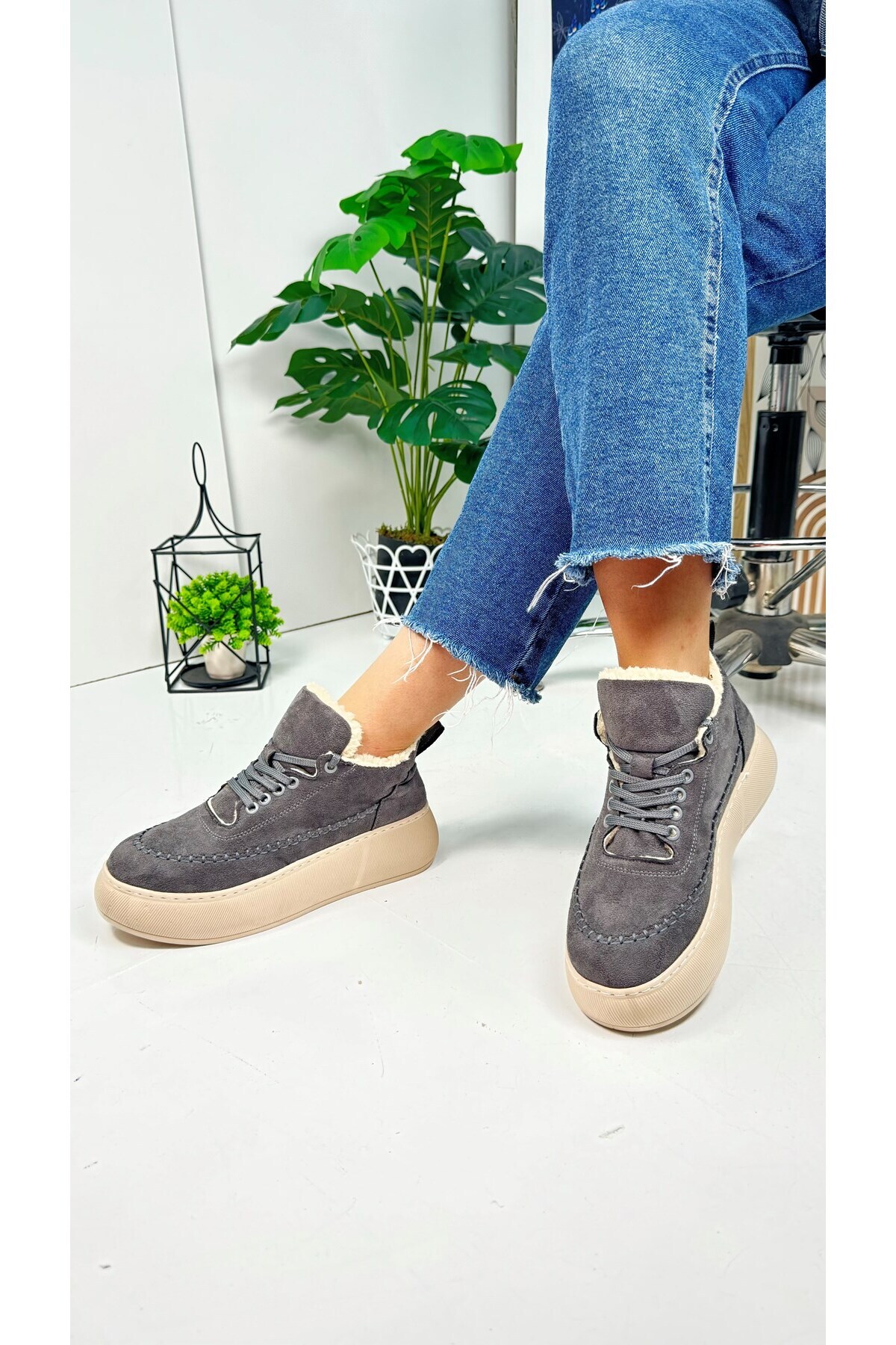 Günlük Kadın Gri Bot Bağcıklı Yüksek Kalın Tabanlı Kürklü Oval Burunlu Süet Hafif Bootie 1701 Günlük Kadın Gri Bot Bağcıklı Yüksek Kalın Tabanlı Kürklü Oval Burunlu Süet Hafif Bootie 1701 PRA-11623909-035749 40