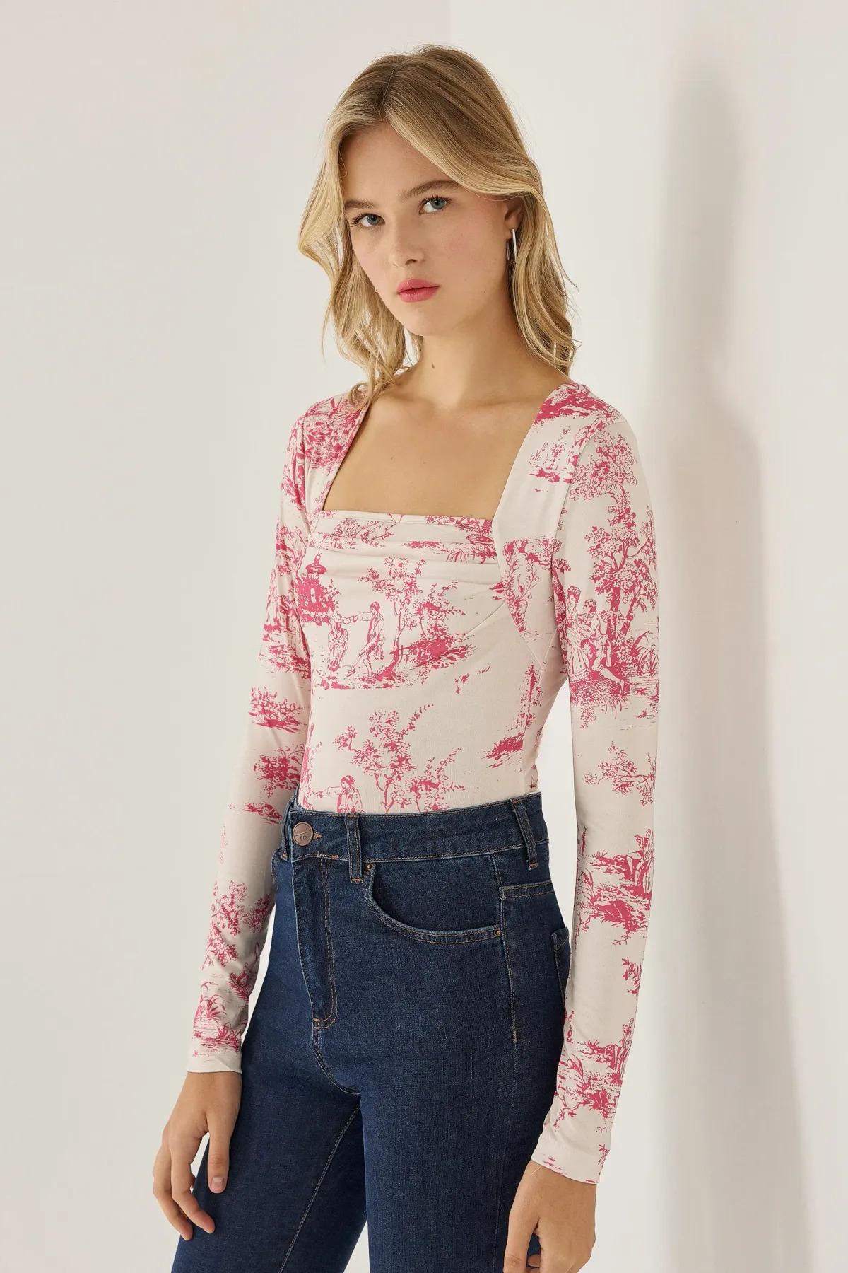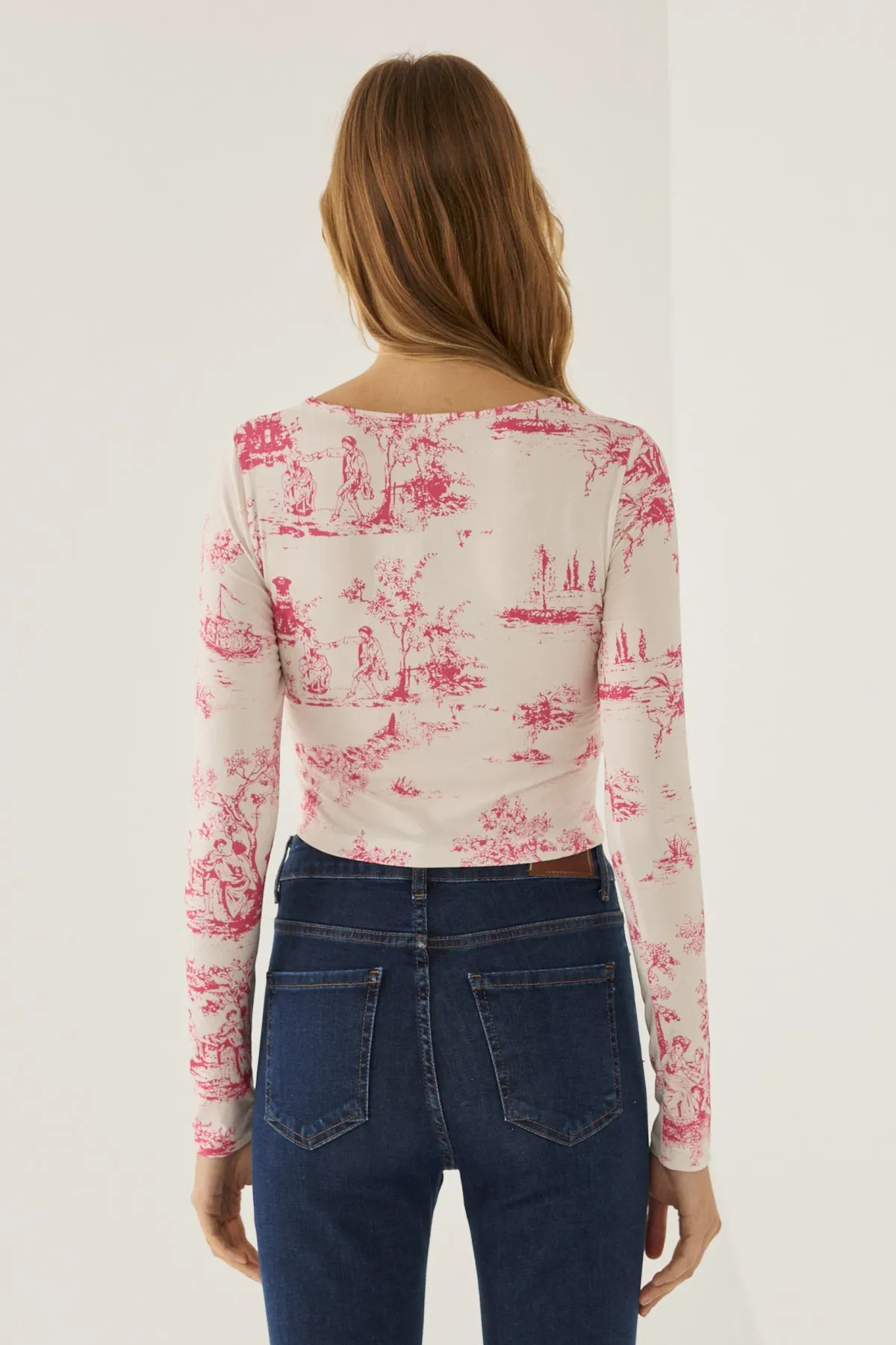 Büzgü Detaylı Desenli Üst Büzgü Detaylı Desenli Üst LZ75K3W2 XL