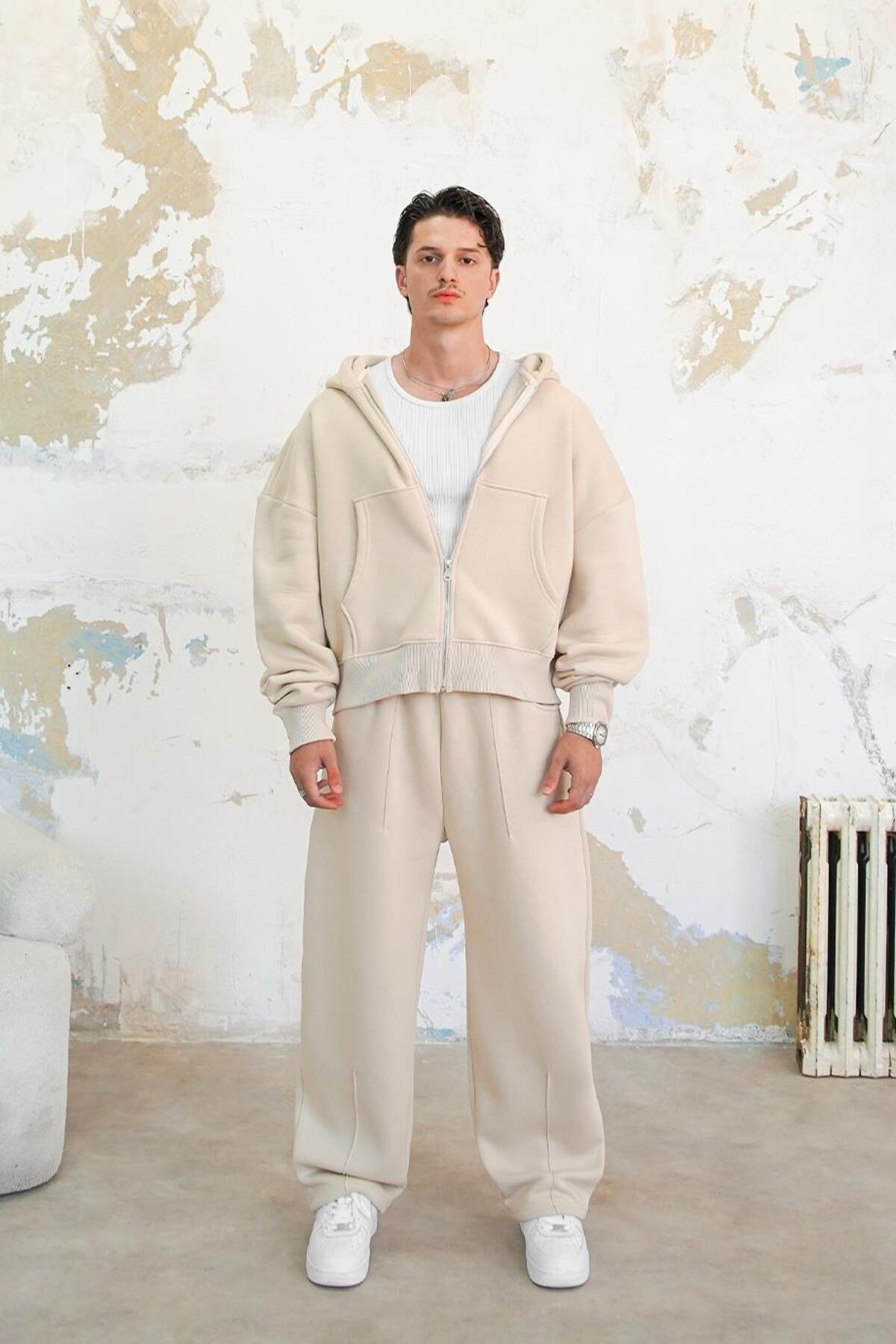 Krem Cozy Basic Tam Fermuar Oversize Sweatshirt Krem Cozy Basic Tam Fermuar Oversize Sweatshirt HF004-K L/XL