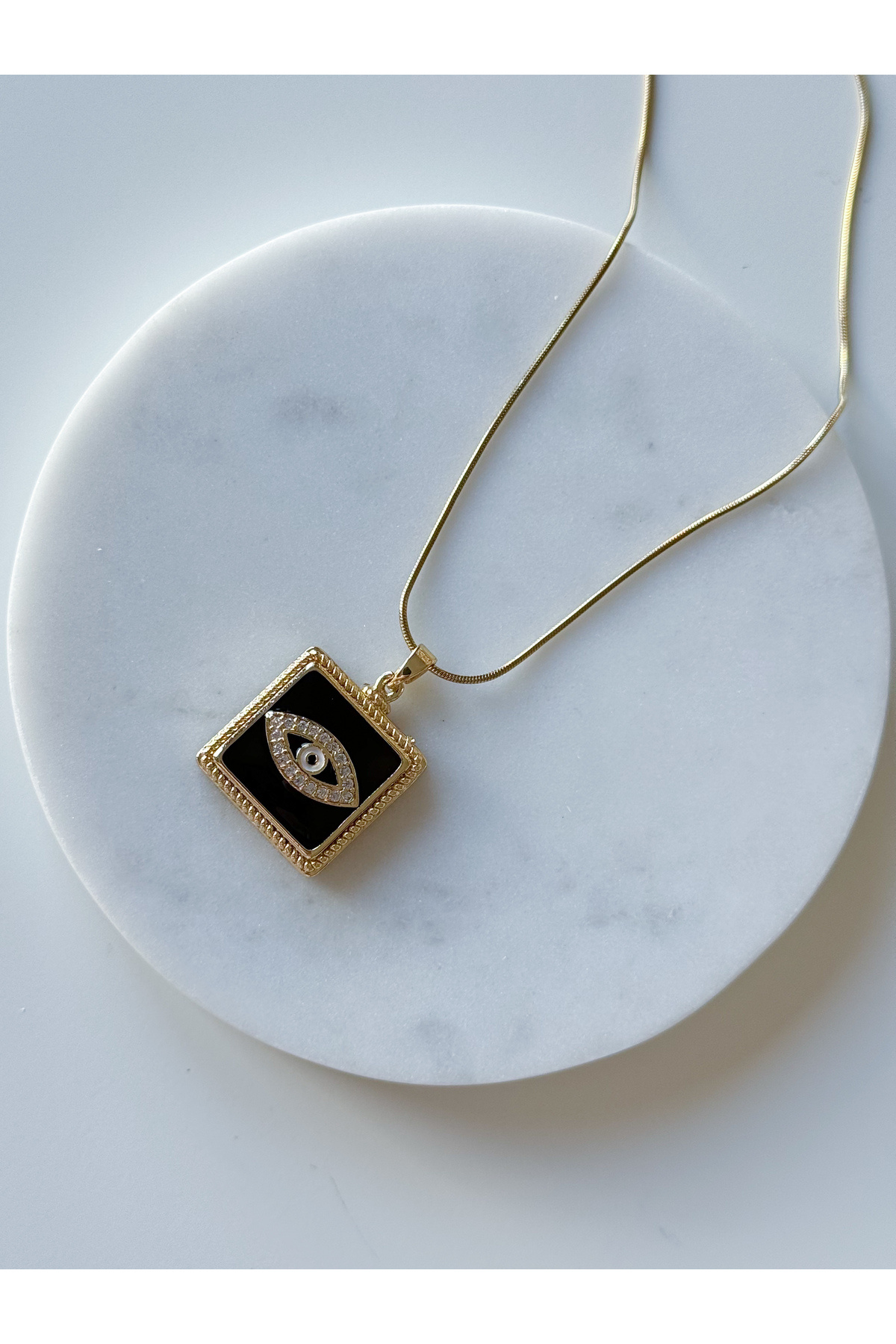 ÇELİK SİYAH KARE GÖZ KOLYE ÇELİK SİYAH KARE GÖZ KOLYE 29438TUFI تک سایز