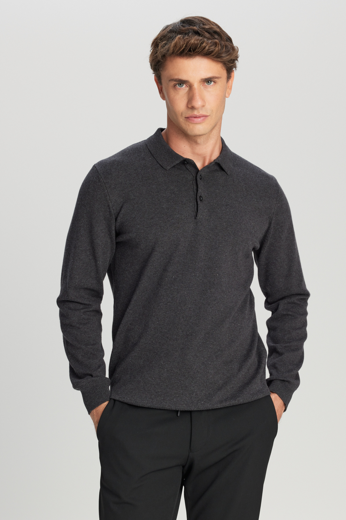 Erkek Antrasit-Melanj Pamuklu Standart Fit Normal Kesim Polo Yaka Triko Kazak Erkek Antrasit-Melanj Pamuklu Standart Fit Normal Kesim Polo Yaka Triko Kazak ACE492510014 3XL