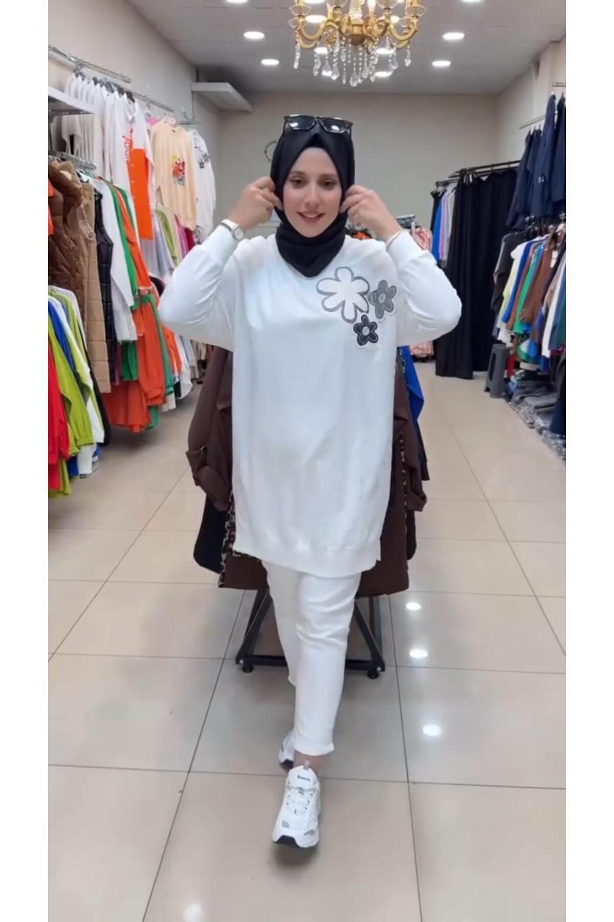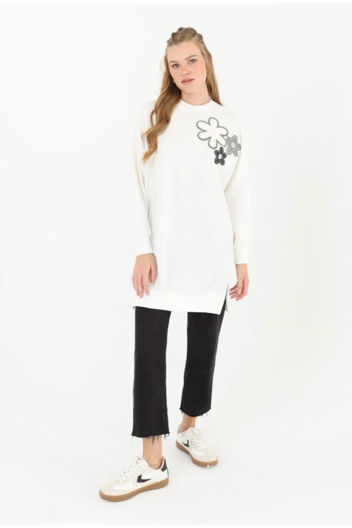 çiçek detaylı iki iplik tunik çiçek detaylı iki iplik tunik 10569 L/XL