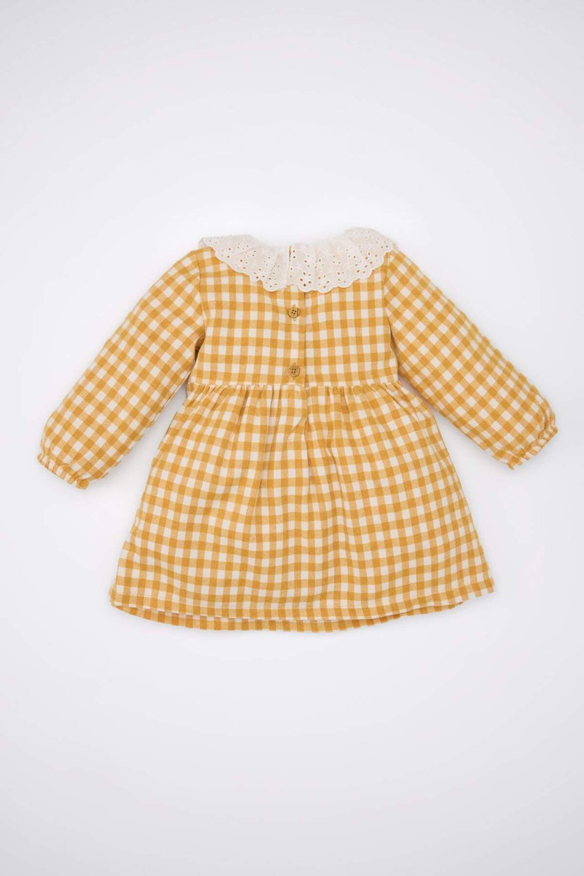 Kız Bebek Dantel Yaka Uzun Kollu Kareli Elbise D8461A5NS Kız Bebek Dantel Yaka Uzun Kollu Kareli Elbise D8461A5NS 5-6 Yaş