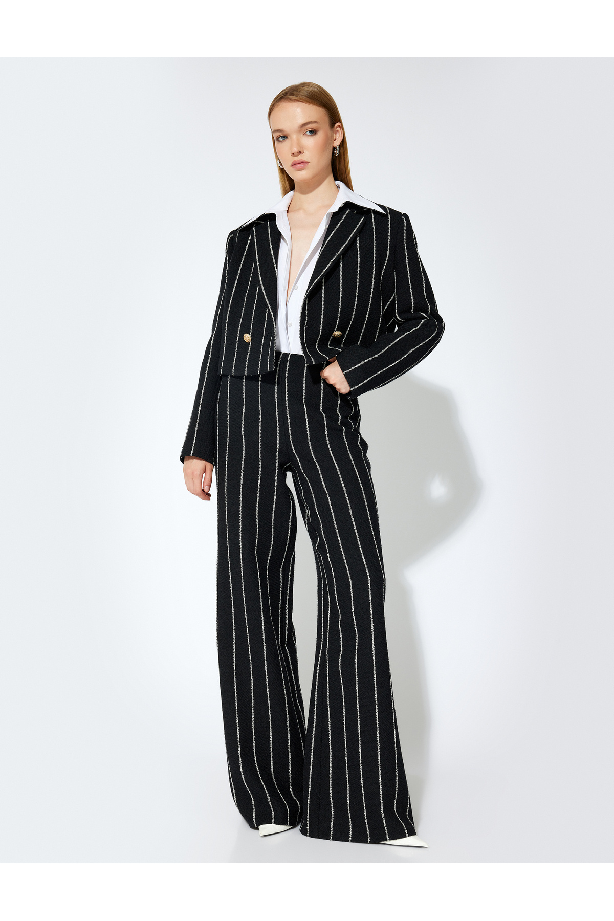 X Sibil Çetinkaya - Crop Blazer Ceket Kruvaze Düğmeli X Sibil Çetinkaya - Crop Blazer Ceket Kruvaze Düğmeli 5WAK50053EW9S9 42