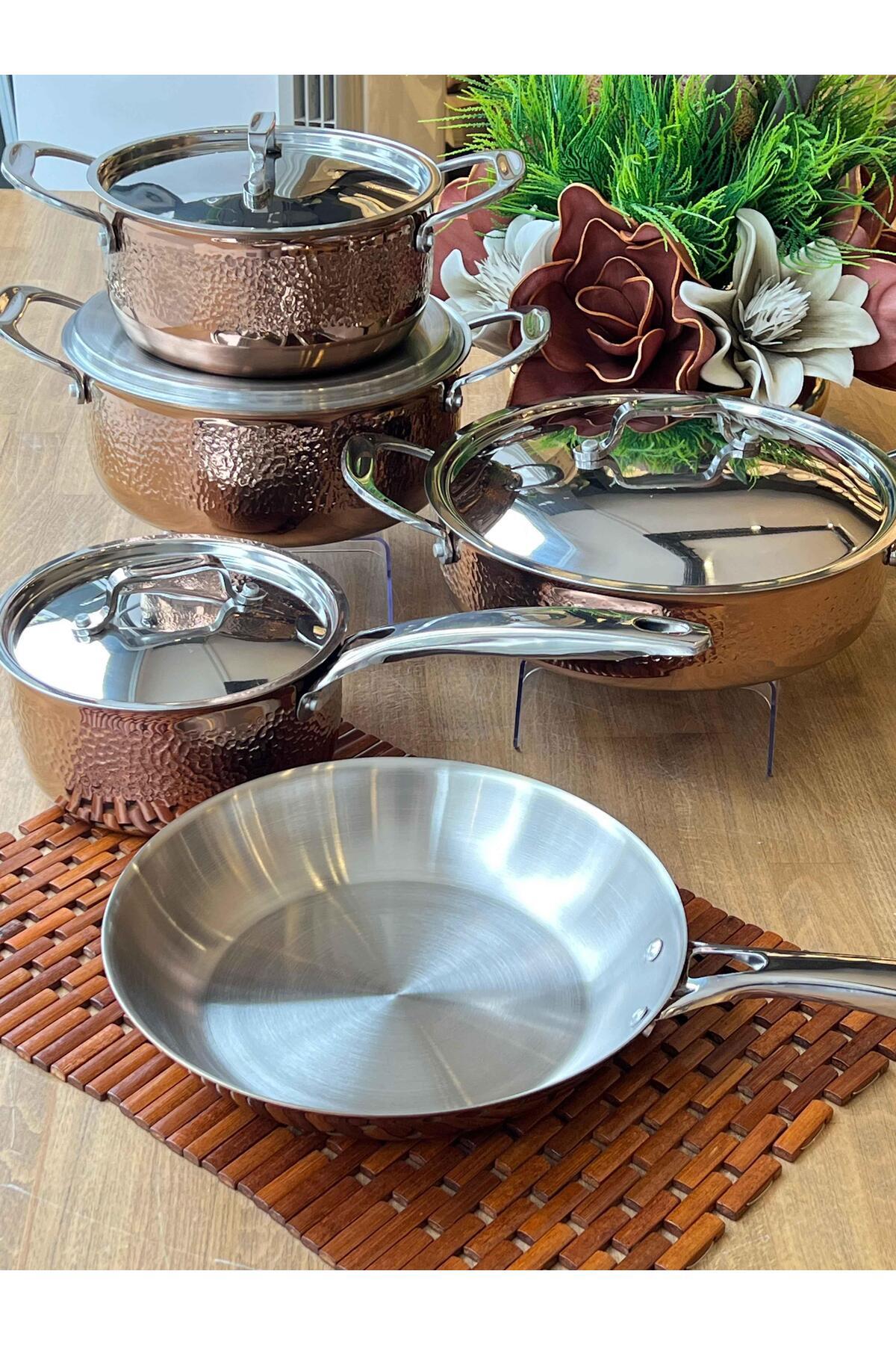 Arow Meisa Bakır Kaplama 3 Katmanlı Çelik 9 Parça Tencere Seti Arow Meisa Bakır Kaplama 3 Katmanlı Çelik 9 Parça Tencere Seti Gns444 تک سایز