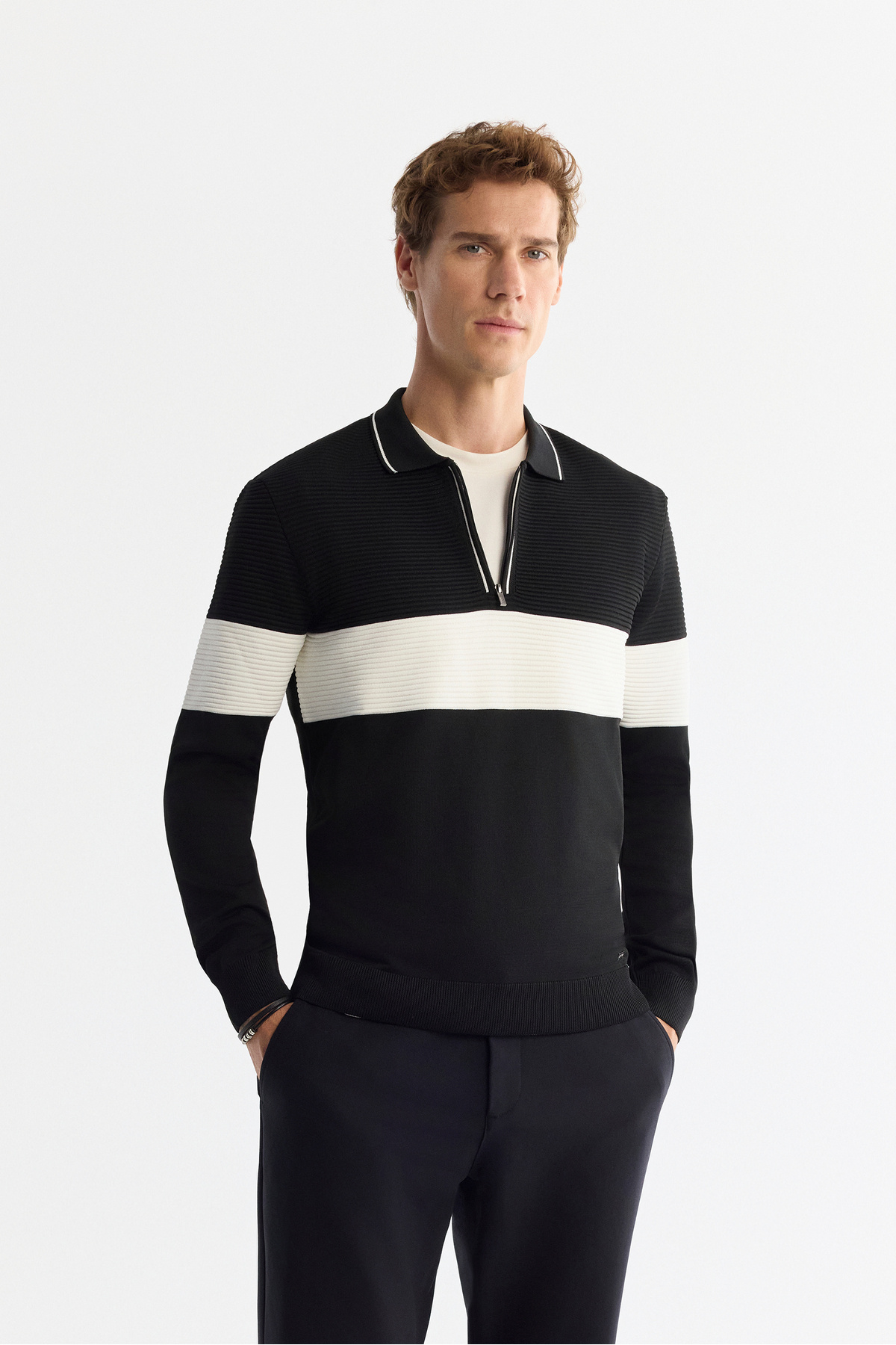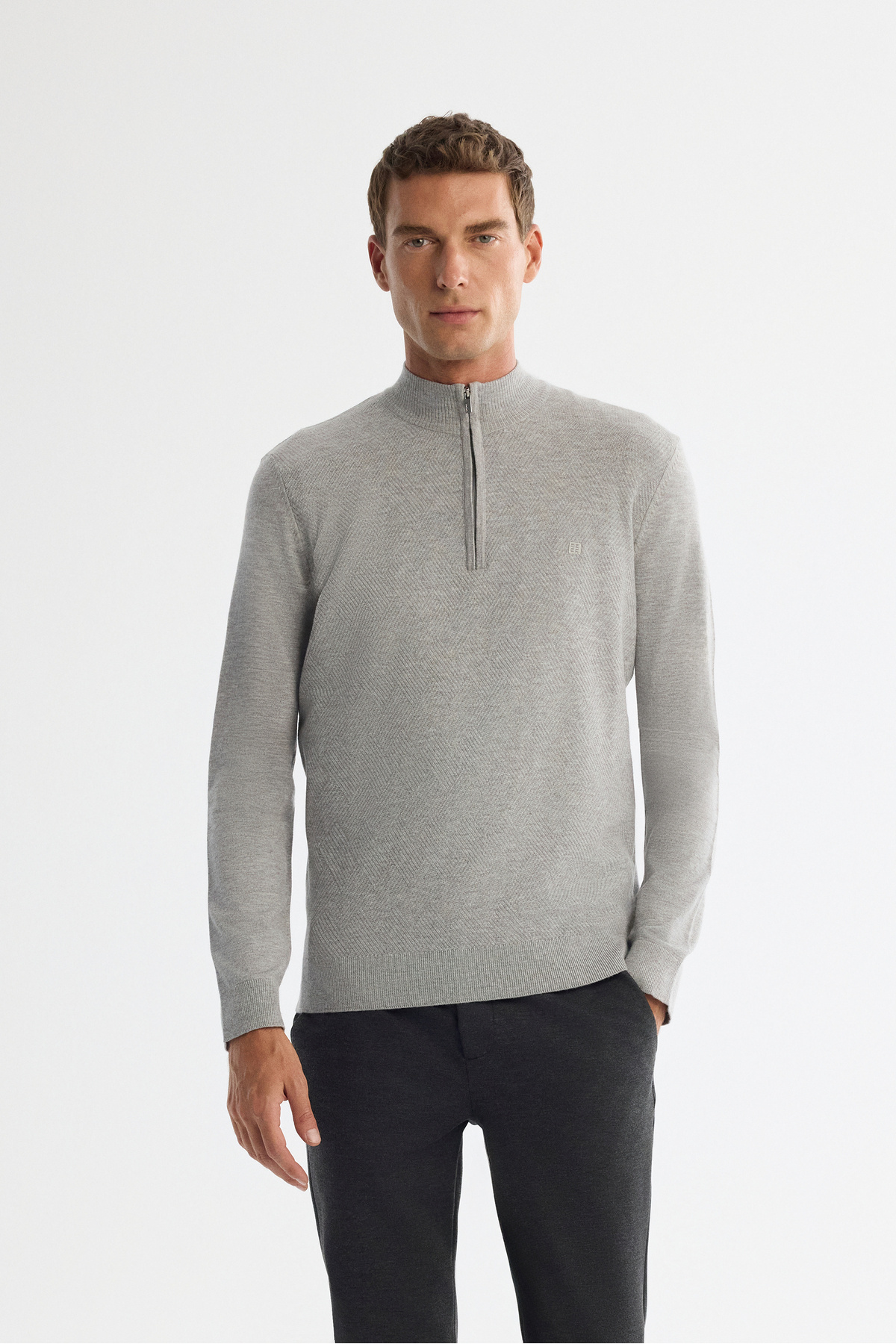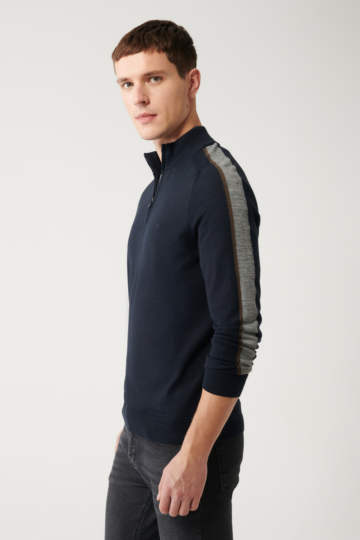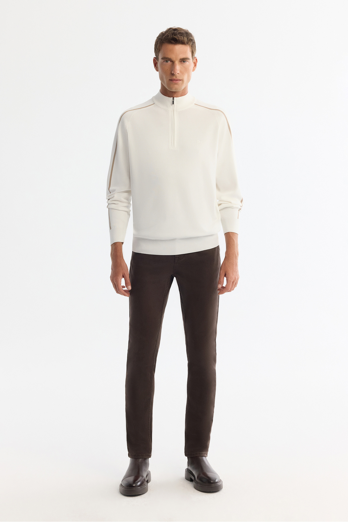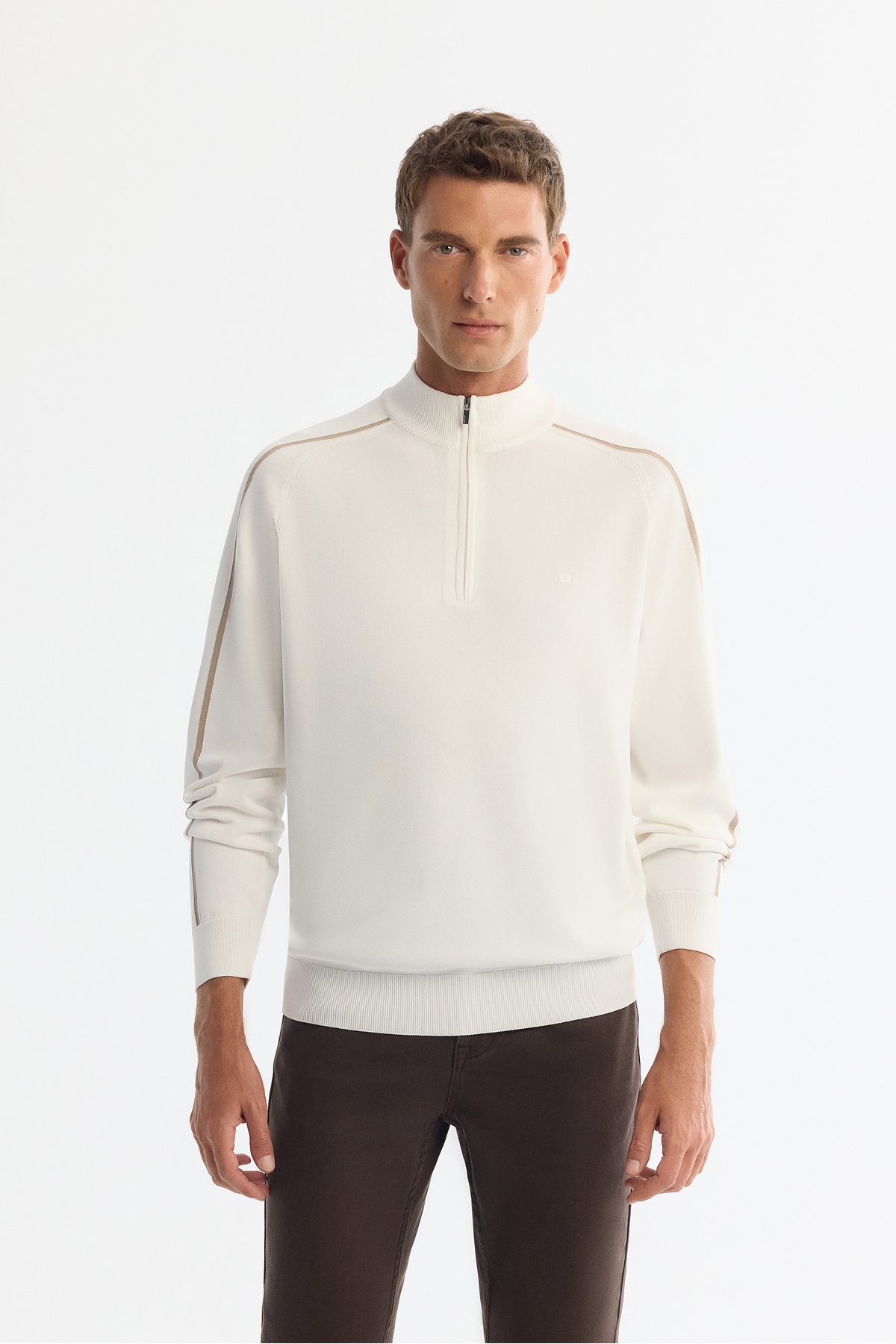Erkek Ekru Fermuarlı Dik Yaka Rayon Triko Regular Fit Kazak A42Y5005 Erkek Ekru Fermuarlı Dik Yaka Rayon Triko Regular Fit Kazak A42Y5005 2XL