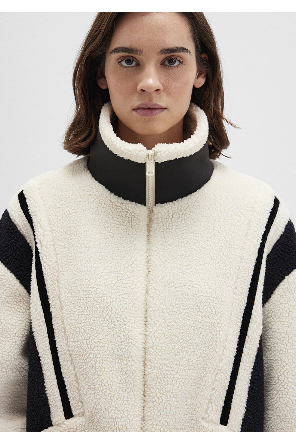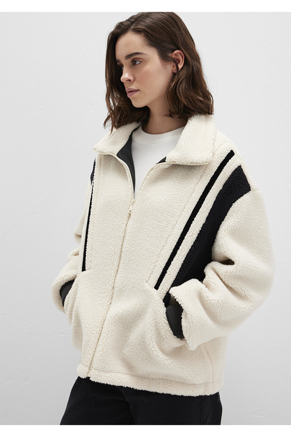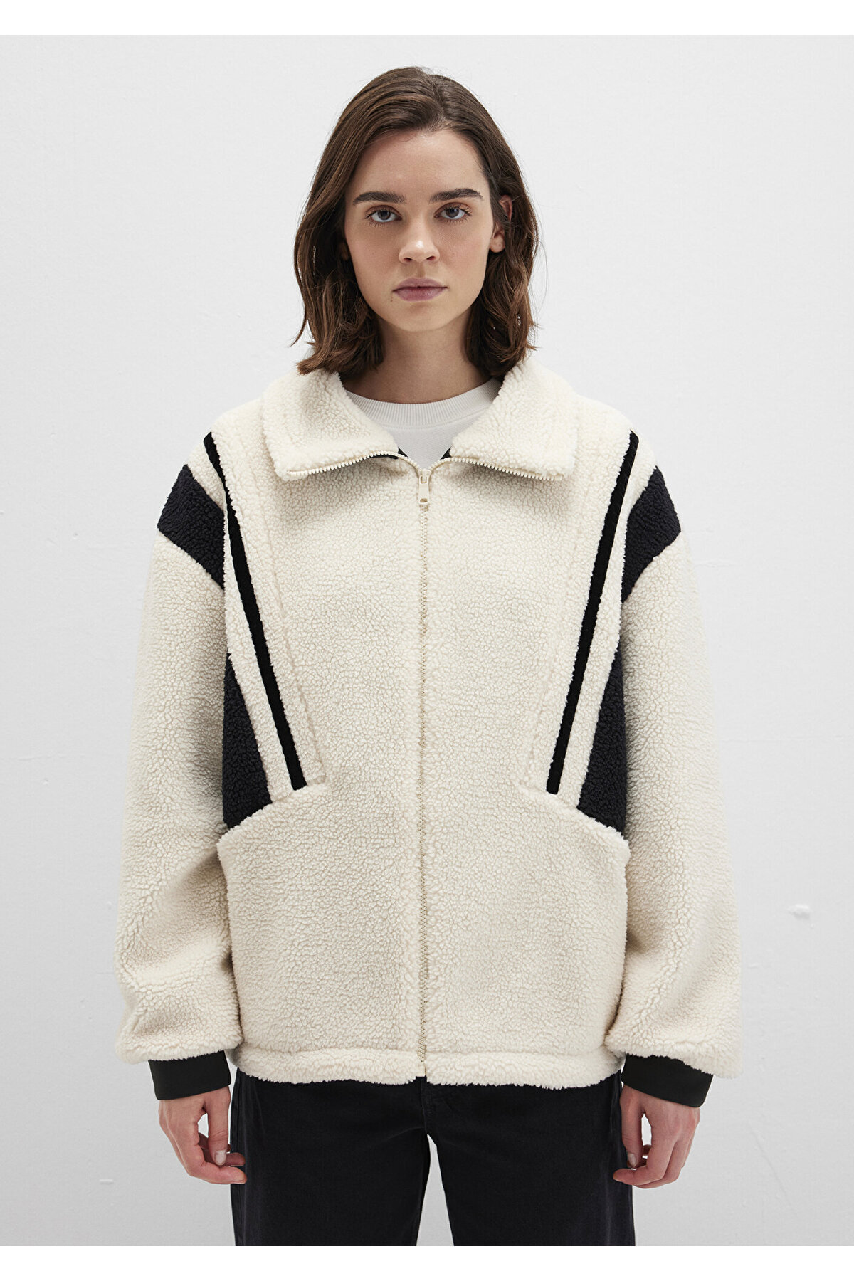 Kontrast Renkli Sherpa Ceket Loose Fit / Bol Rahat Kesim 1110520-70007 Kontrast Renkli Sherpa Ceket Loose Fit / Bol Rahat Kesim 1110520-70007 L