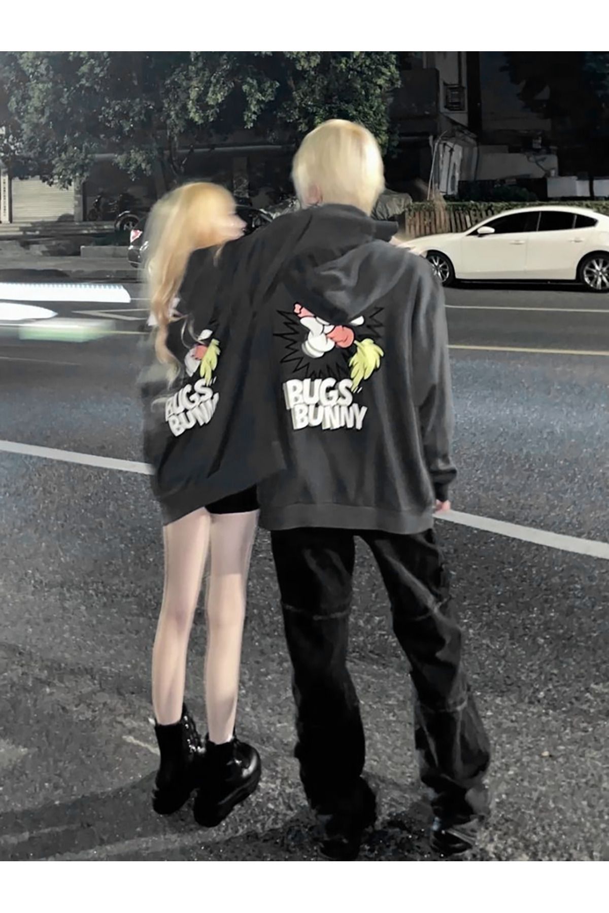 Bugs ve Lola Bunny Baskılı Sevgili Kombini 2'li Sweatshirt-Pembe Siyah Beyaz Oversize 3 iplik Hoodie Bugs ve Lola Bunny Baskılı Sevgili Kombini 2'li Sweatshirt-Pembe Siyah Beyaz Oversize 3 iplik Hoodie Sevgilisweatlolabugs-BOİ M/XL