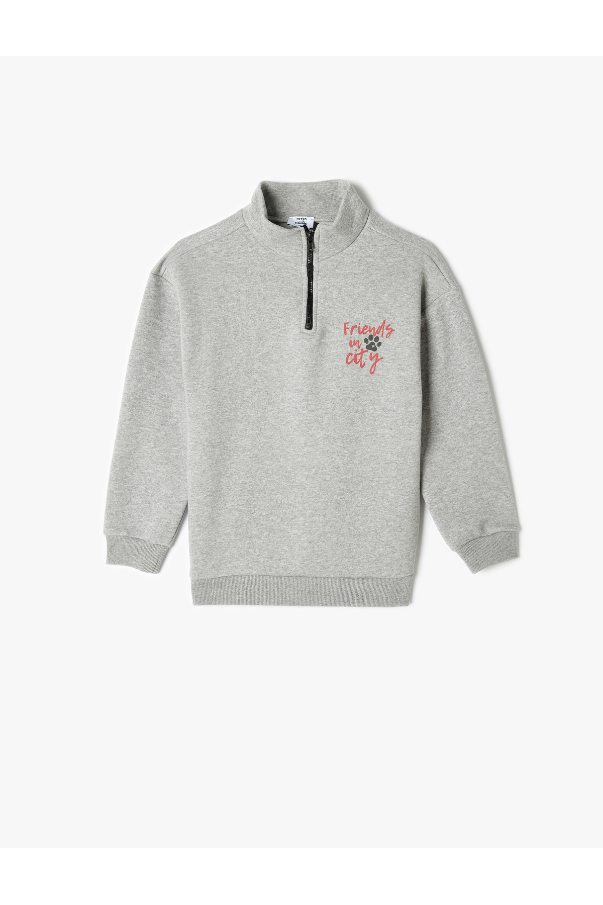 Sweatshirt Dik Yaka Yarım Fermuarlı Cepli Baskı Detaylı Şardonlu Sweatshirt Dik Yaka Yarım Fermuarlı Cepli Baskı Detaylı Şardonlu 5WKB10505TK 11-12 Yaş