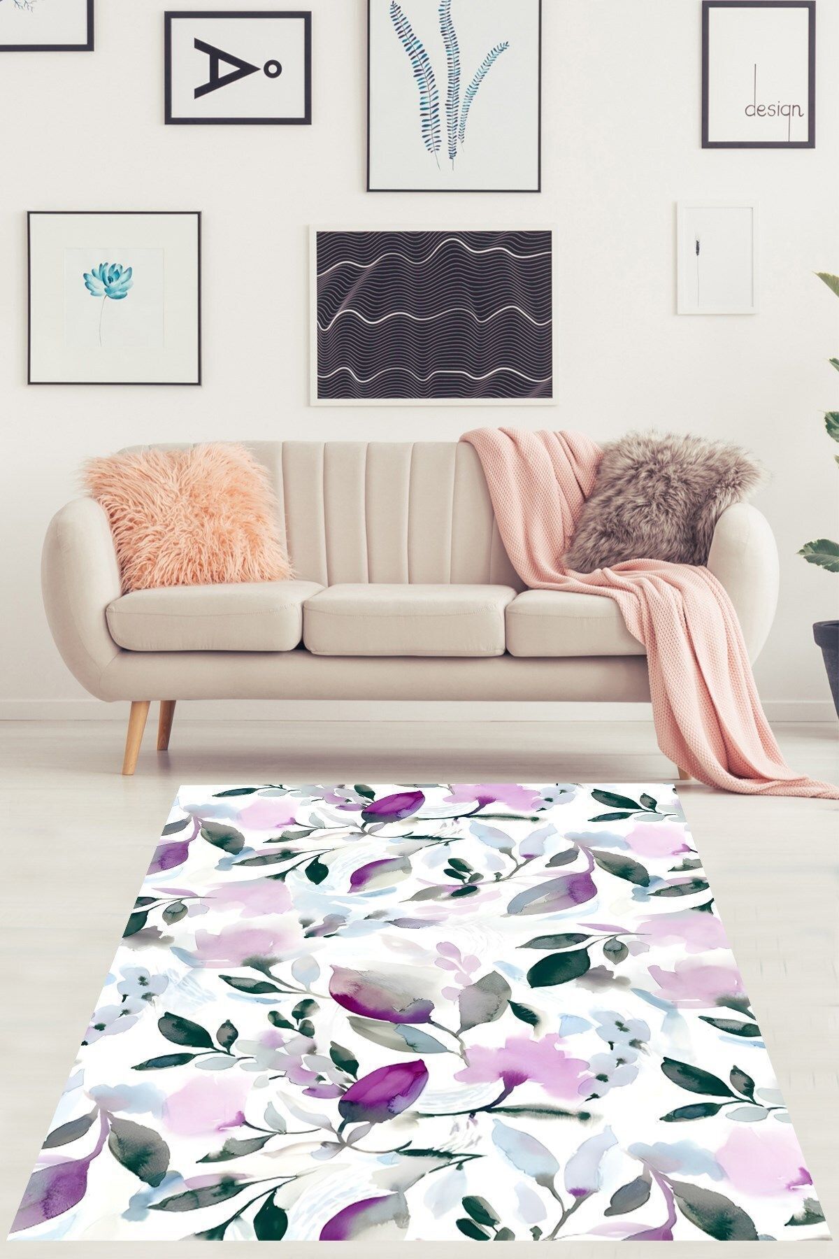 Vintage Suluboya Çiçek Desenli Yıkanabilir Kaymaz Taban Leke Tutmaz Salon Halısı Vintage Suluboya Çiçek Desenli Yıkanabilir Kaymaz Taban Leke Tutmaz Salon Halısı PNHS11 160 x 230
