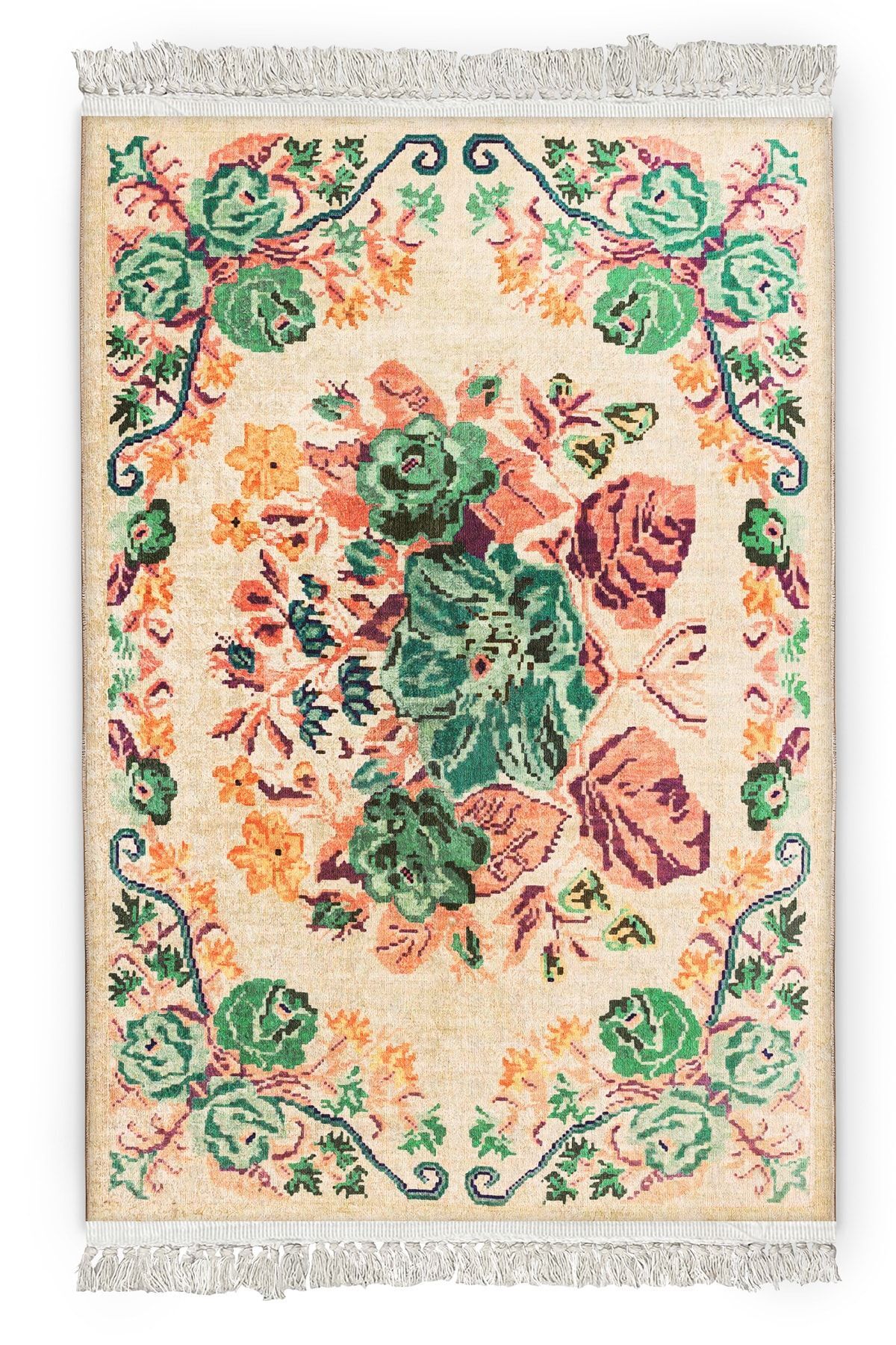 Etnik Nakış ve Kuş Desenli Yıkanabilir Kaymaz Taban Leke Tutmaz Salon Halısı Yoluk Etnik Nakış ve Kuş Desenli Yıkanabilir Kaymaz Taban Leke Tutmaz Salon Halısı Yoluk PNHS1 160 x 230