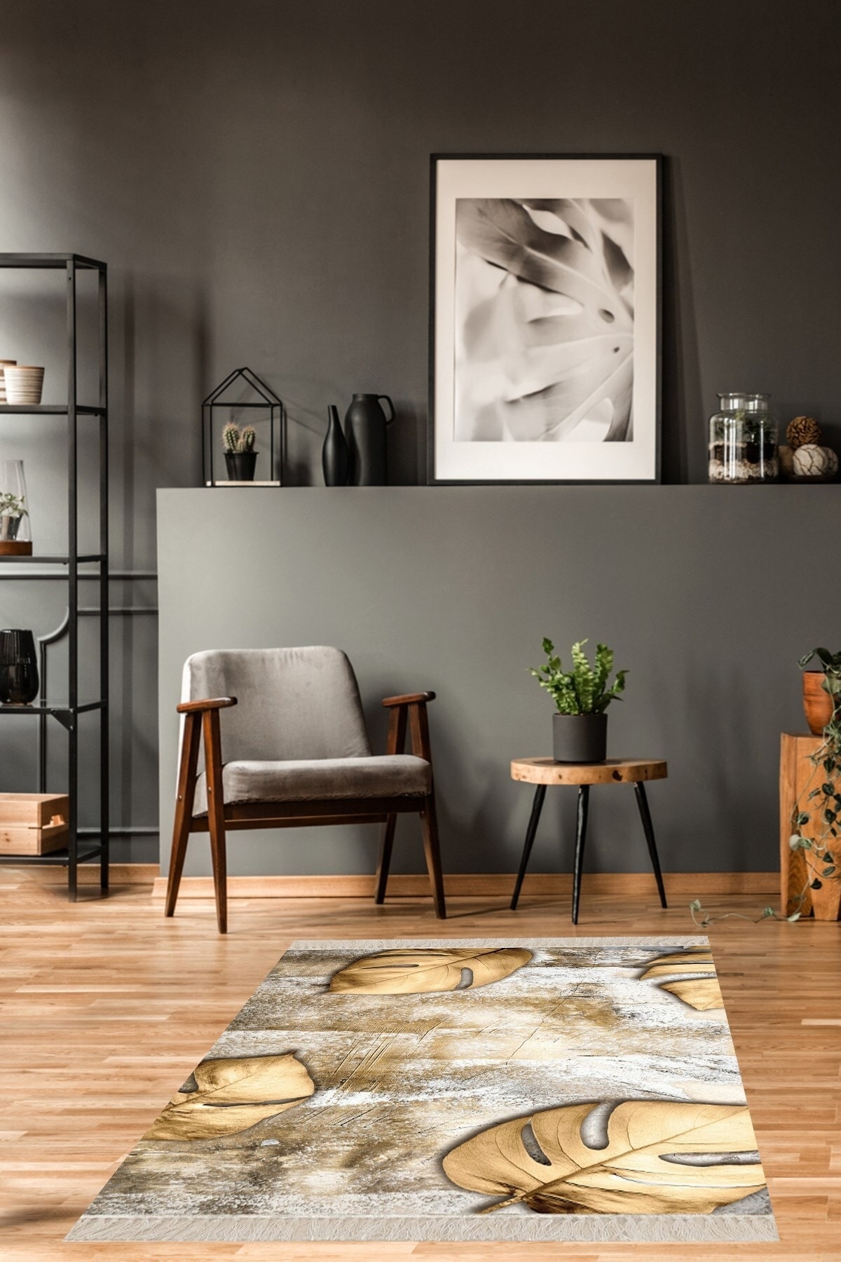 Kuş Tüyü Desenli Gold Geometrik Dijital Baskı Yıkanabilir Modern Salon Halı ve Yolluk Kuş Tüyü Desenli Gold Geometrik Dijital Baskı Yıkanabilir Modern Salon Halı ve Yolluk MEG965 160 x 230