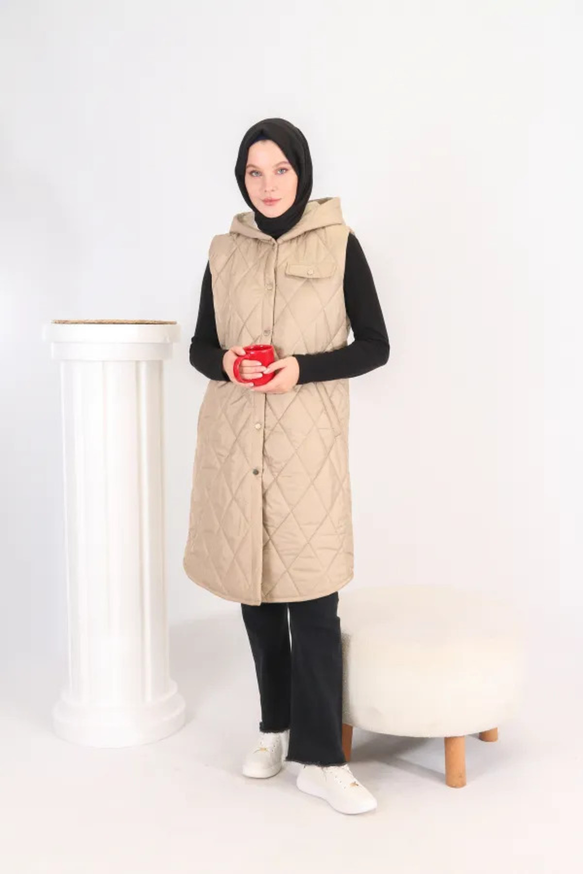 Kadın Kapüşonlu Uzun Çıtçıtlı Şişme Dolum Yelek Kadın Kapüşonlu Uzun Çıtçıtlı Şişme Dolum Yelek ModabennaŞişmeYelek 42