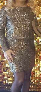 Pullu Payetli Kayık Yaka Uzun Kollu Mini Sırt Detaylı Abiye Elbise Pullu Payetli Kayık Yaka Uzun Kollu Mini Sırt Detaylı Abiye Elbise 5WAK80113FK XL