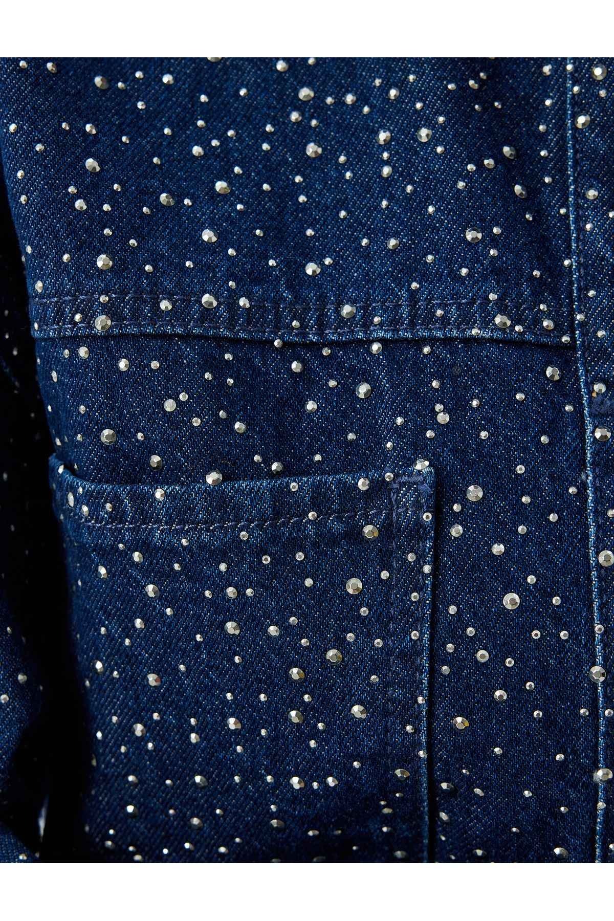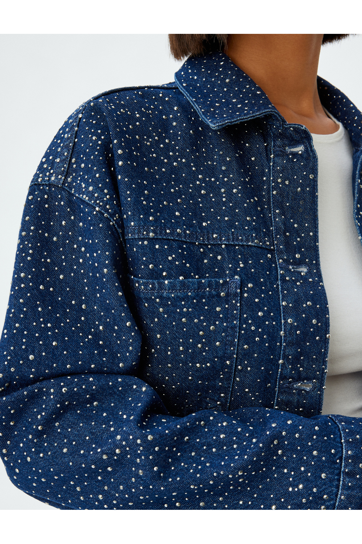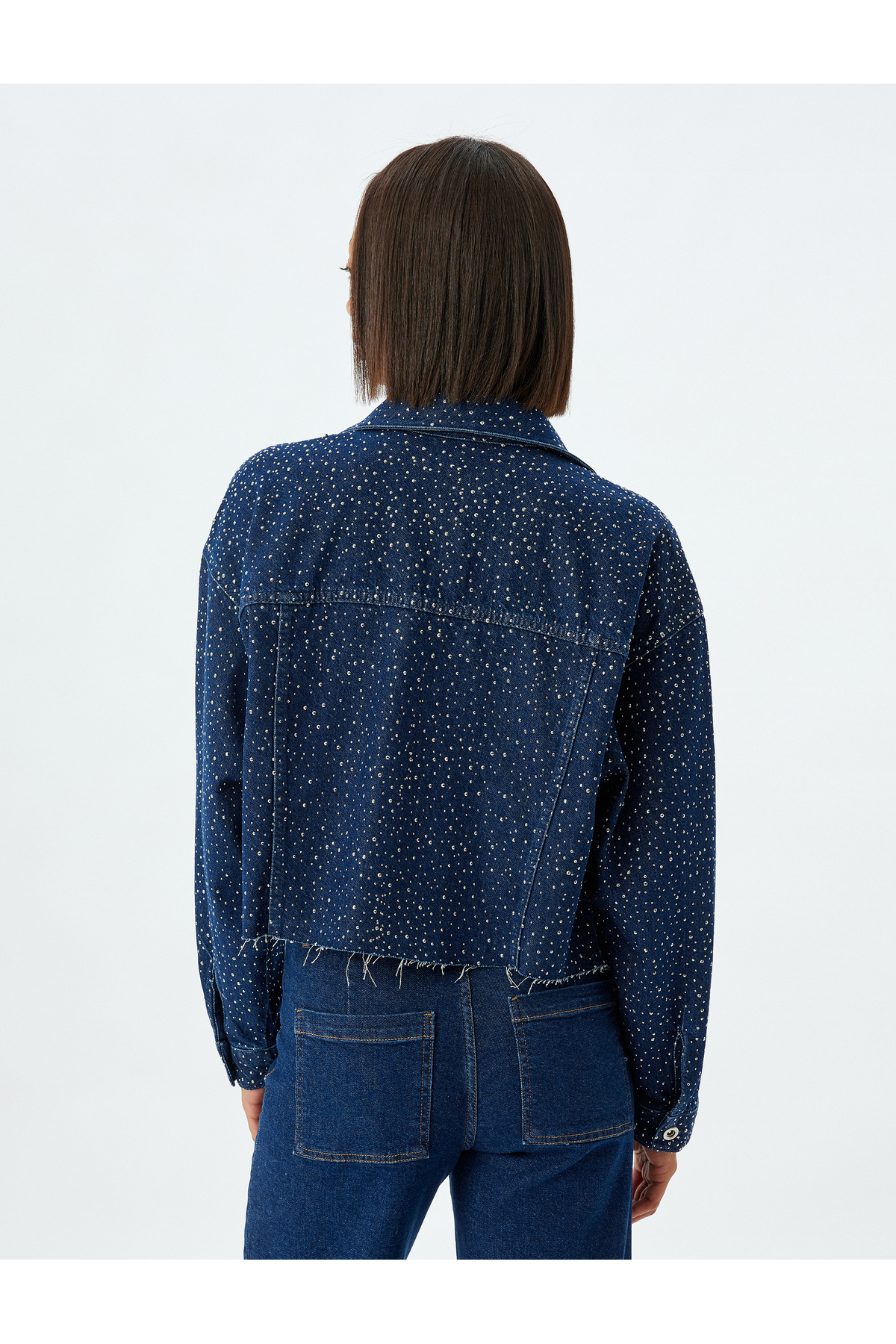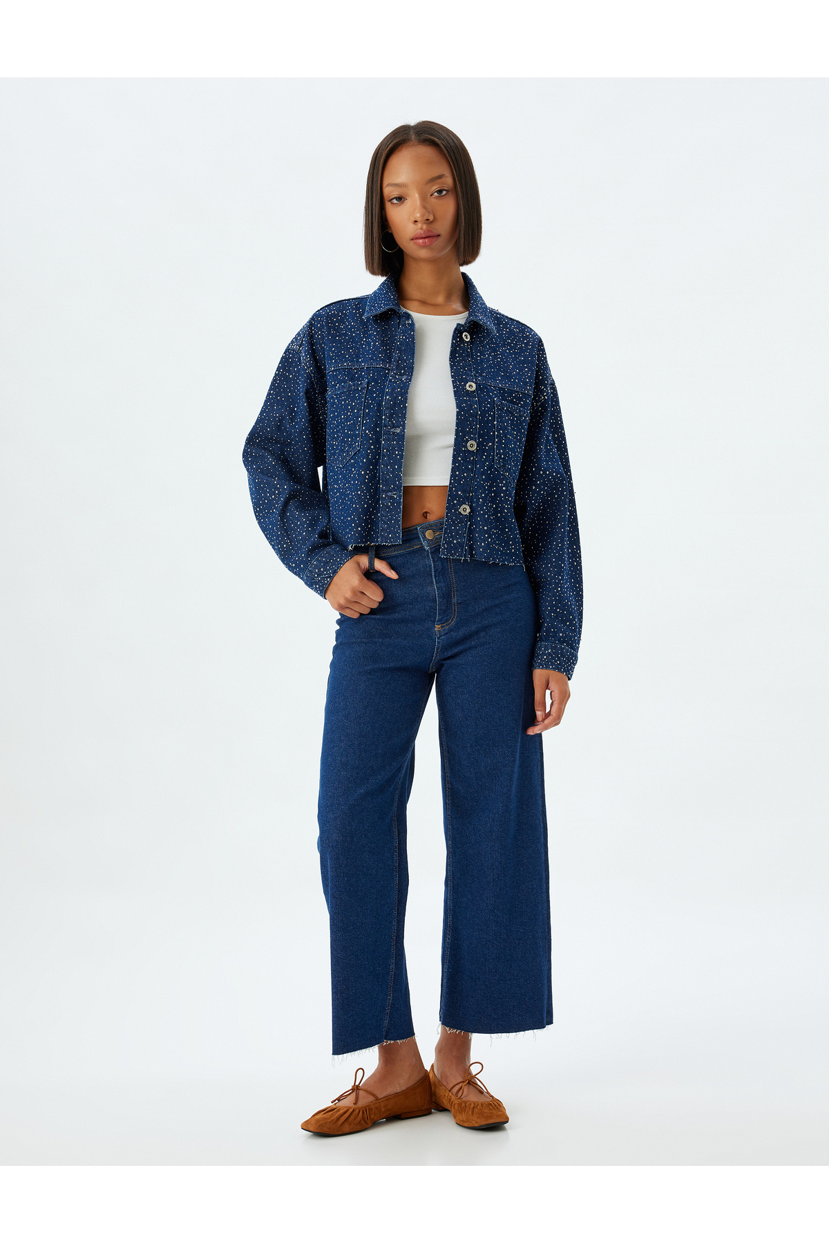 Taşlı Kot Ceket Klasik Yaka Düğmeli Cep Detaylı Taşlı Kot Ceket Klasik Yaka Düğmeli Cep Detaylı 5WAL50066MD L