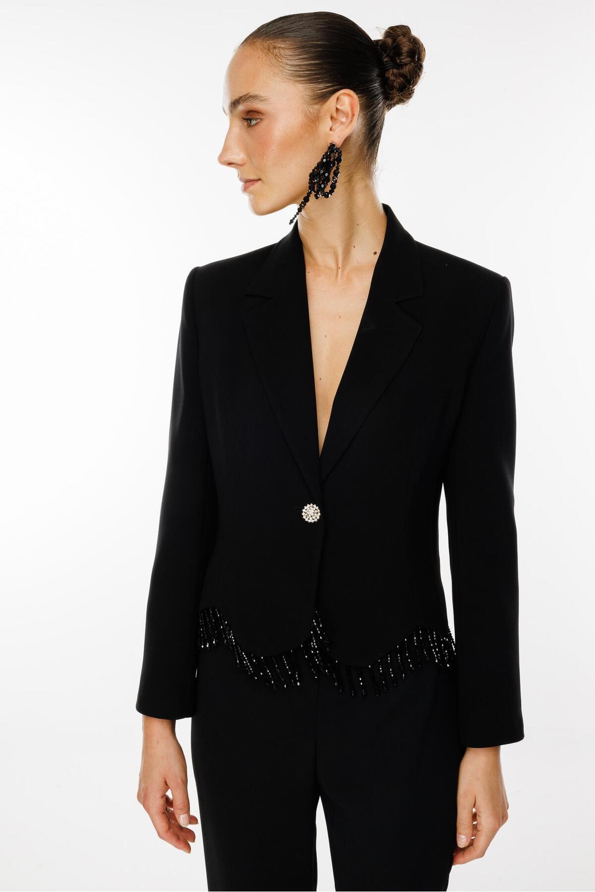 Modailgi Etek Ucu Boncuk Püsküllü Kısa Ceket Siyah Modailgi Etek Ucu Boncuk Püsküllü Kısa Ceket Siyah ILG250CKT07025 46