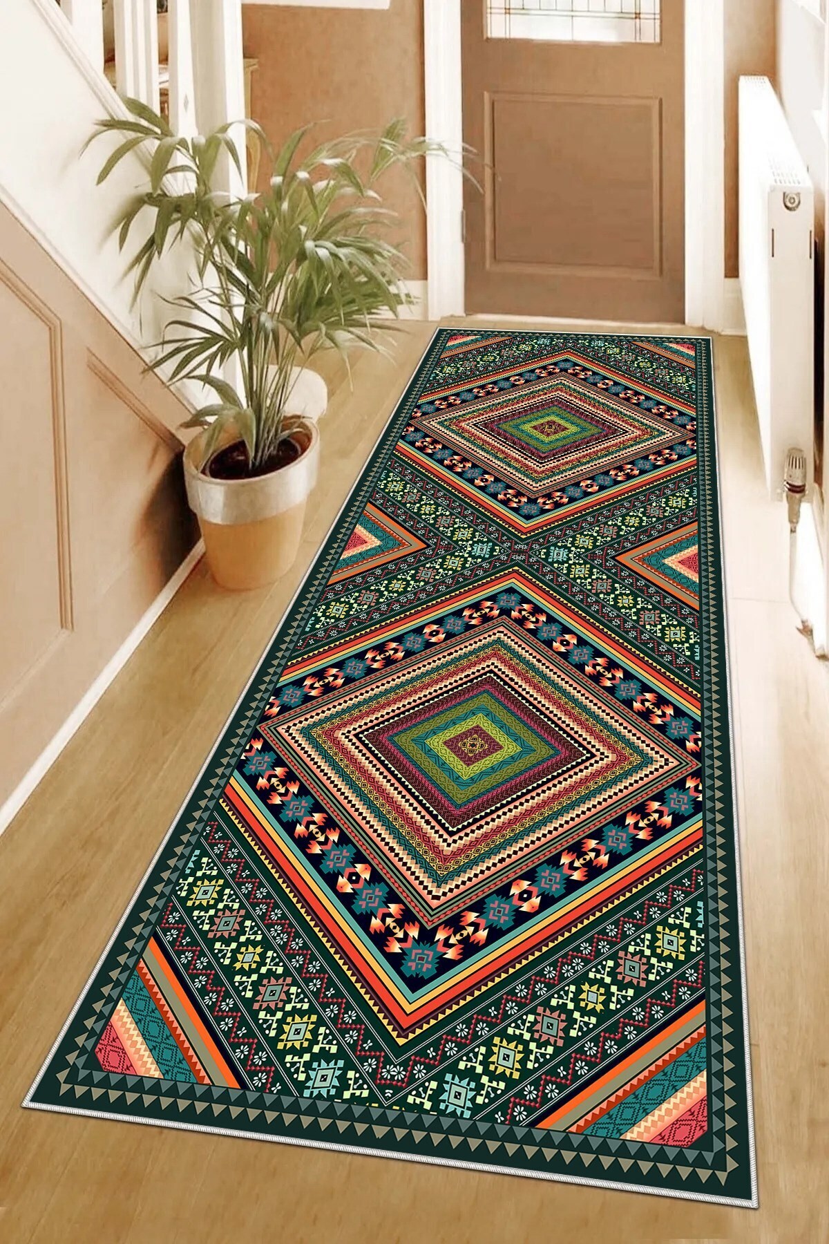 Kilim Desenli Dijital Baskı Yıkanabilir Kaymaz Taban Etnik Salon Halısı ve Yolluk Kilim Desenli Dijital Baskı Yıkanabilir Kaymaz Taban Etnik Salon Halısı ve Yolluk YLLK09 100 x 300