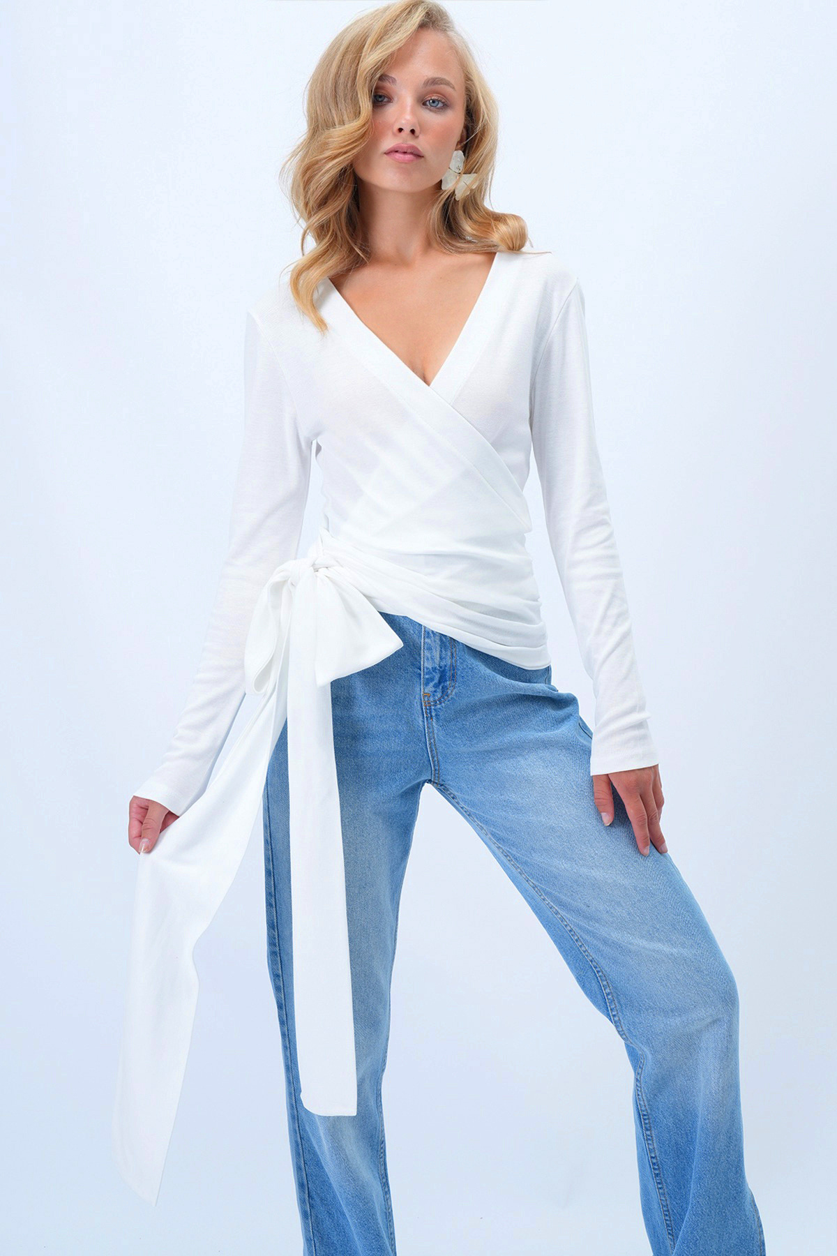 Kadın Koyu Gri Kruvaze Yaka Kolu Lastikli Bluz ALC-X12929 Kadın Koyu Gri Kruvaze Yaka Kolu Lastikli Bluz ALC-X12929 L