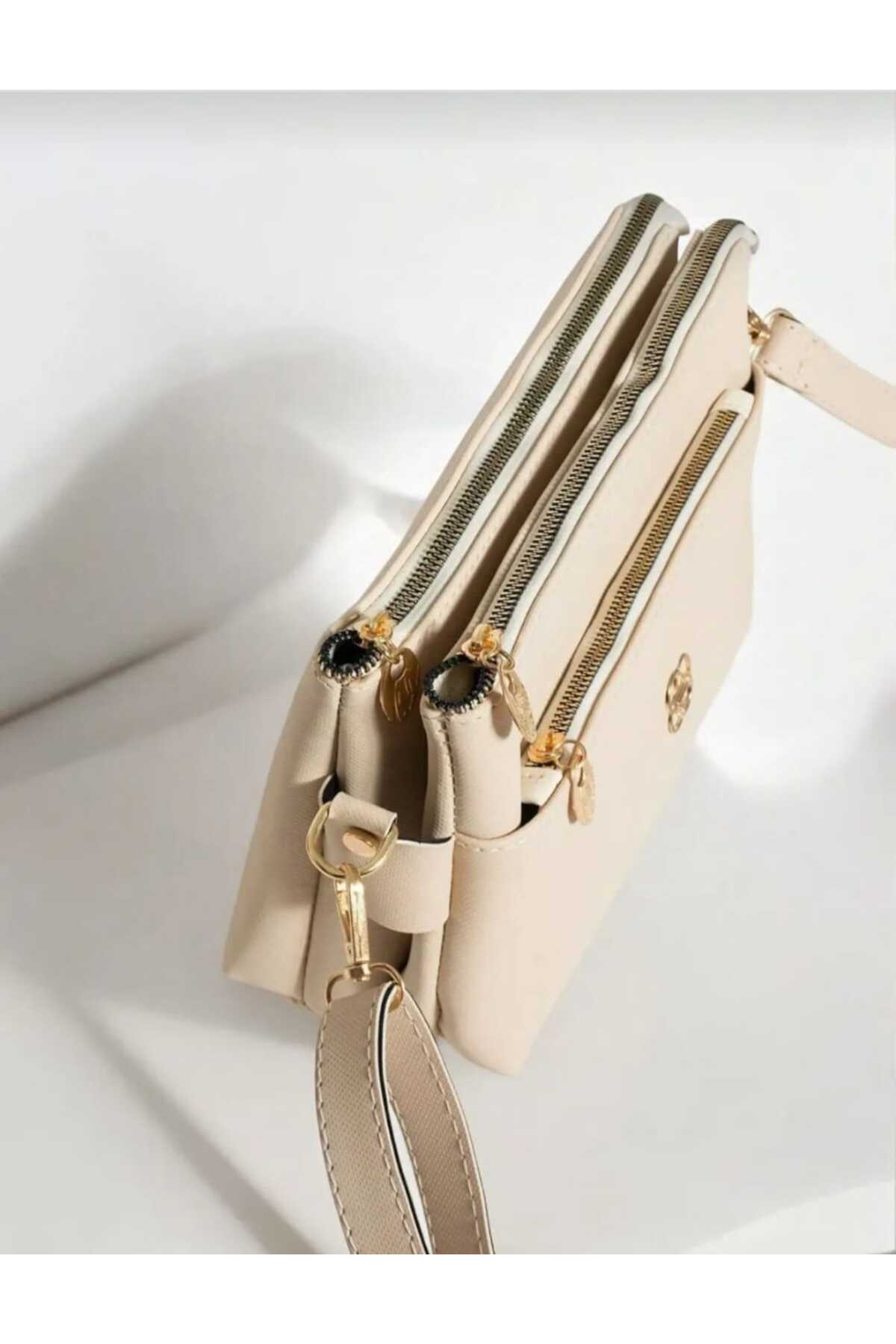 Kadın Krem 3 bölme omuz çantası Kadın Krem 3 bölme omuz çantası R4773 AA