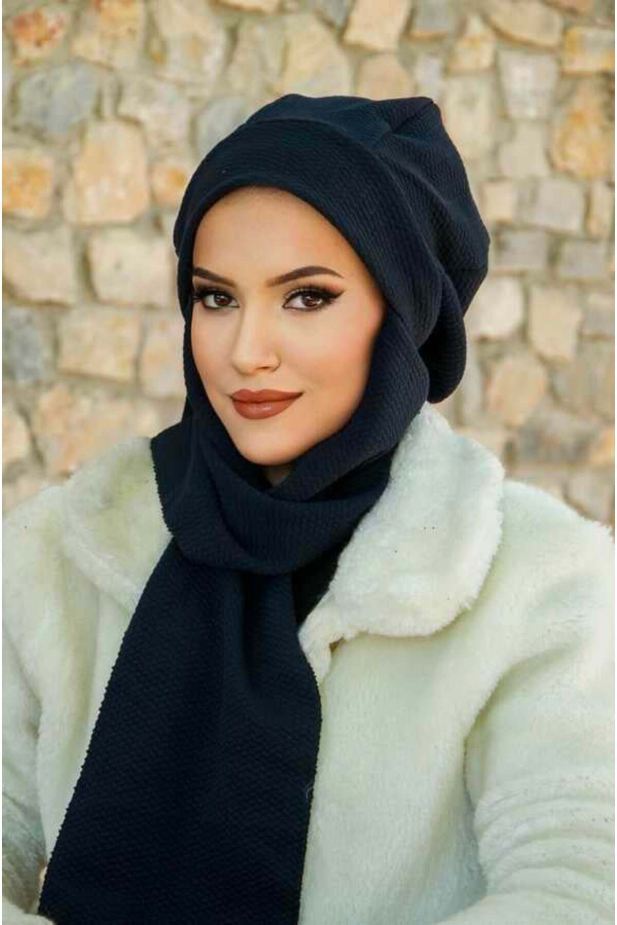 Lacivert Kendinden Desenli Tesettür Bere Lacivert Kendinden Desenli Tesettür Bere 30204 Standart