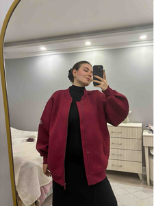 Oversize Çıkarılabilir Gül Detaylı Astarlı Alexa Bomber Ceket Bordo Oversize Çıkarılabilir Gül Detaylı Astarlı Alexa Bomber Ceket Bordo HLFW25-00018 L