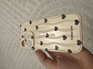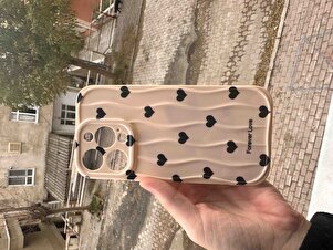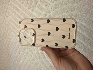 IPHONE 14 PRO KREM RENK DALGALI SİYAH KALP DESENLİ KILIF IPHONE 14 PRO KREM RENK DALGALI SİYAH KALP DESENLİ KILIF me701 تک سایز