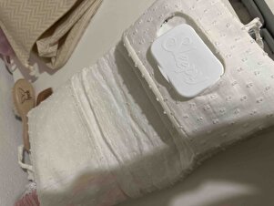 Bebek Alt Açma Çantası Organizer Ponponlu Müslin Beyaz Bebek Alt Açma Çantası Organizer Ponponlu Müslin Beyaz 2002 تک سایز