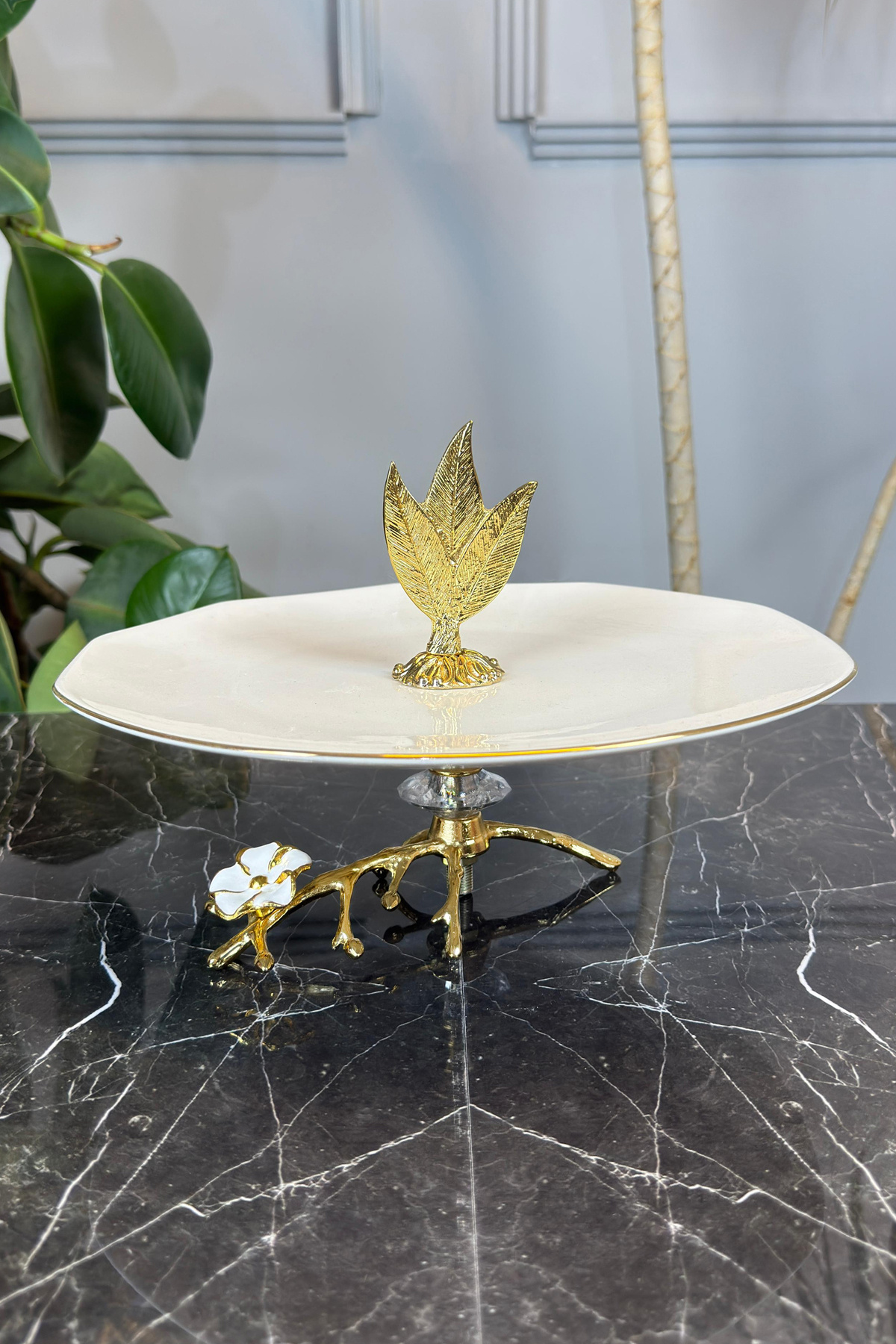 Kuş Detaylı Porselen Sunumluk Dekoratif Ayaklı Tabak & Gold Yaldızlı Kuş Detaylı Porselen Sunumluk Dekoratif Ayaklı Tabak & Gold Yaldızlı 1478141231222 تک سایز