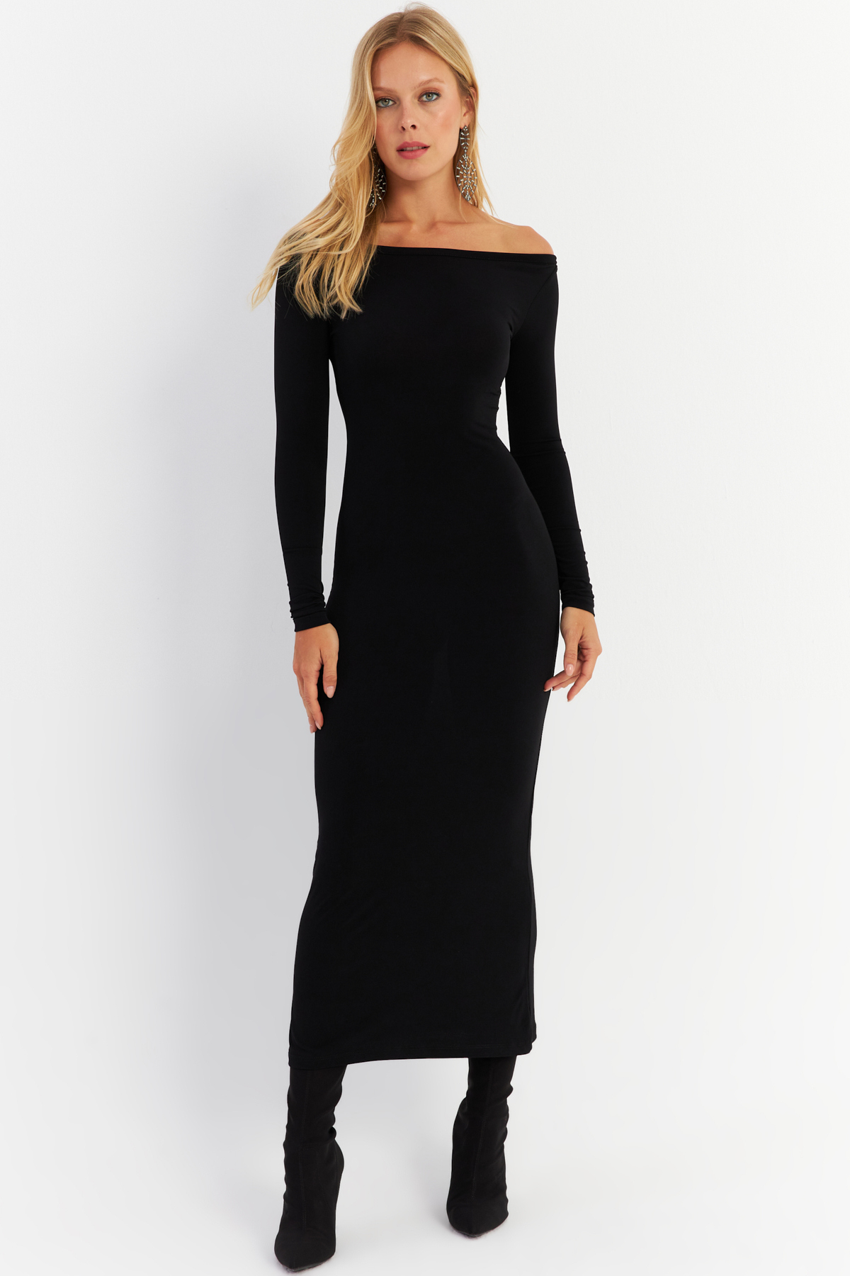 Kadın Siyah Madonna Yaka Maxi Elbise DMR391 Kadın Siyah Madonna Yaka Maxi Elbise DMR391 L