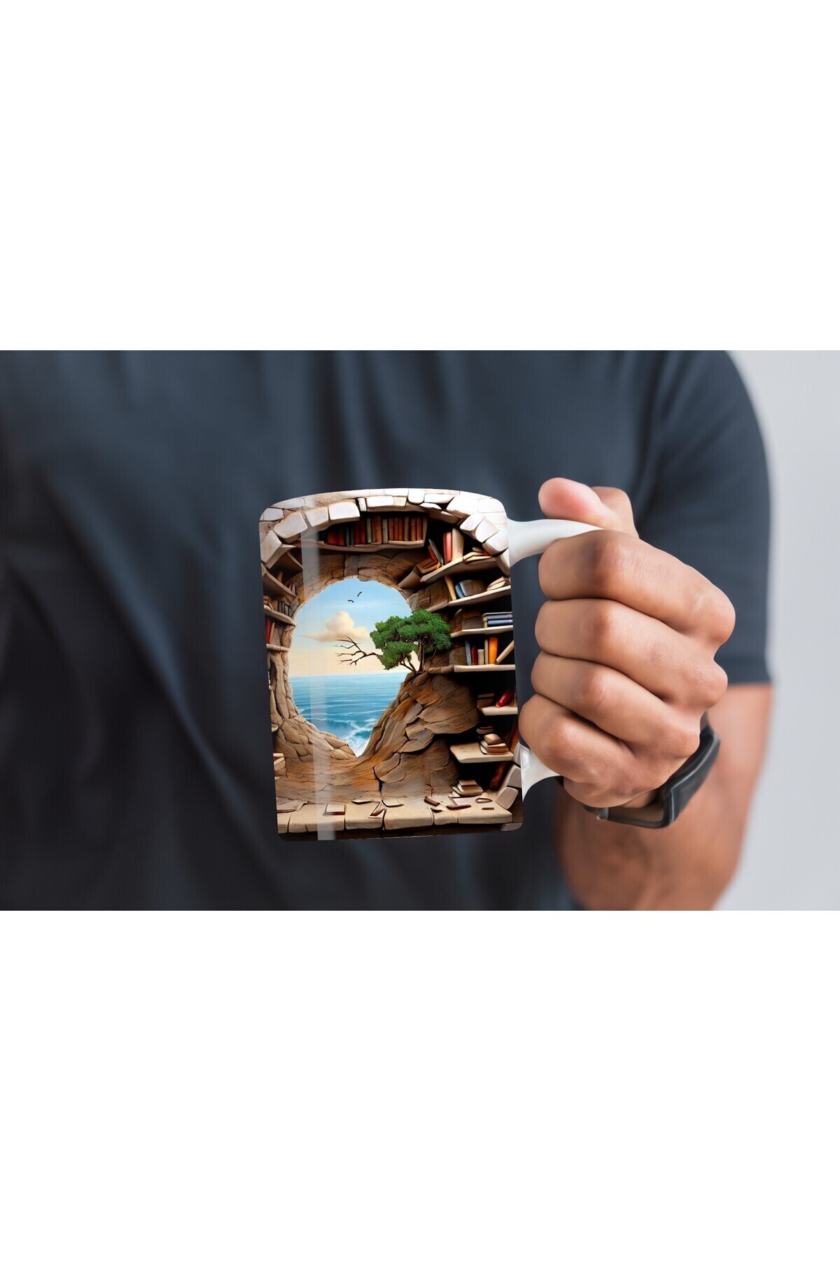 Kitaplık Kütüphane Baskılı 3D Tasarım Seramik Kupa Mug - Hediyelik Kupa Bardak Kitaplık Kütüphane Baskılı 3D Tasarım Seramik Kupa Mug - Hediyelik Kupa Bardak kütüphanex1 تک سایز
