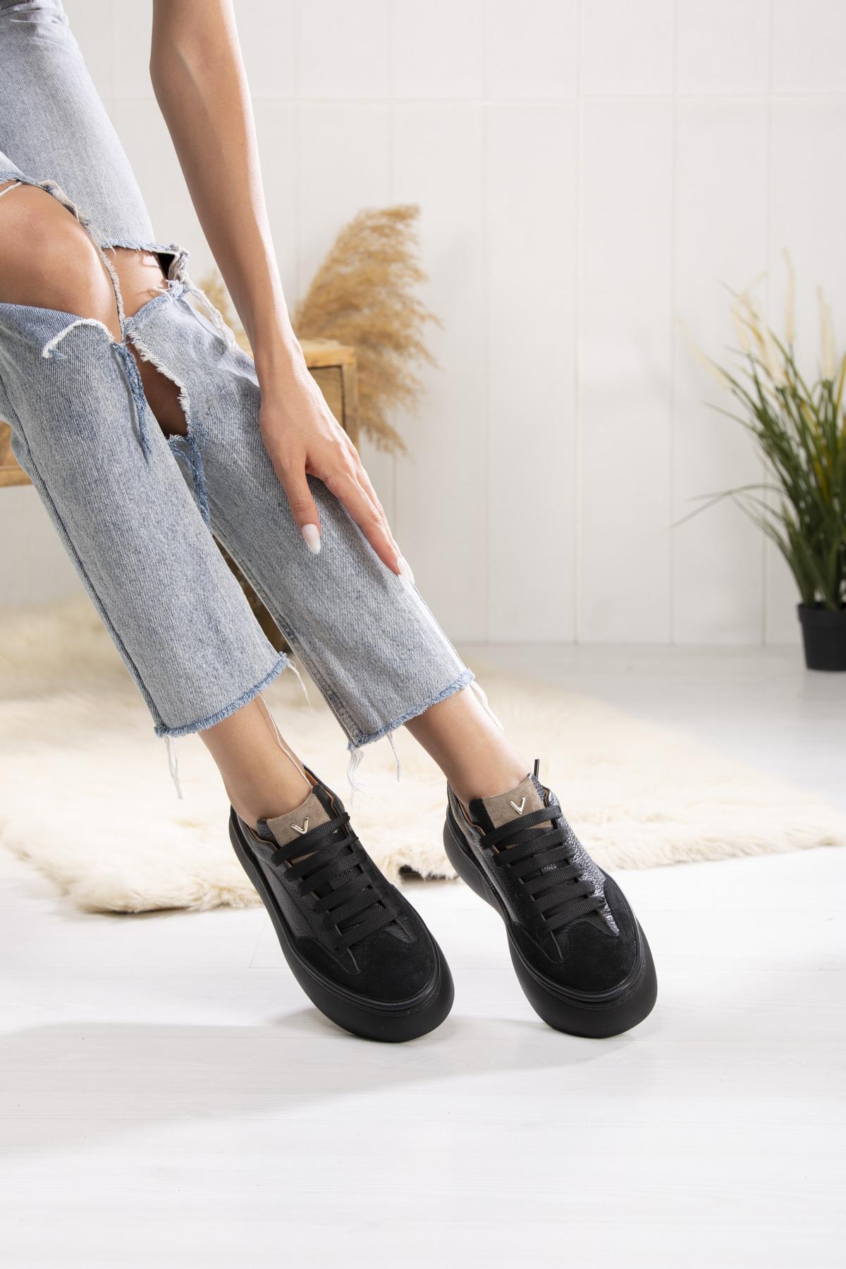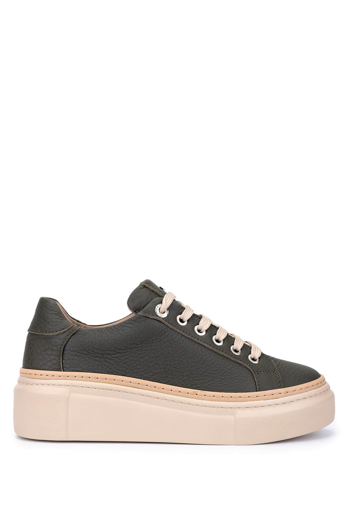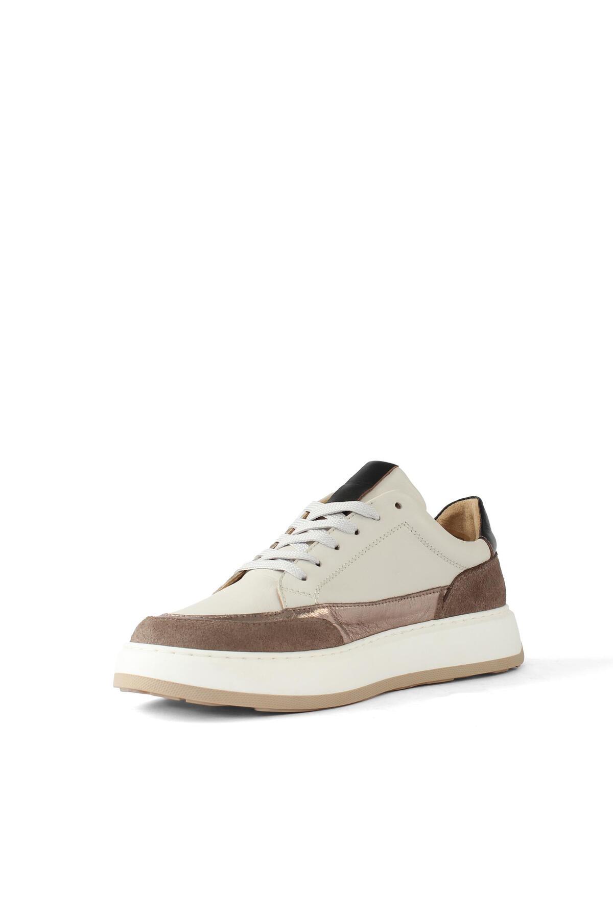 Kadın Bej Bağcıklı Kalın Tabanlı Deri Sneaker Kadın Bej Bağcıklı Kalın Tabanlı Deri Sneaker 115 20607 40