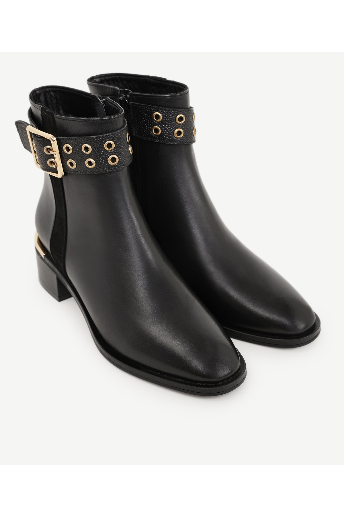 Metal Topuk Ve Toka Detaylı Deri Bot Metal Topuk Ve Toka Detaylı Deri Bot 24KKAY4024 41