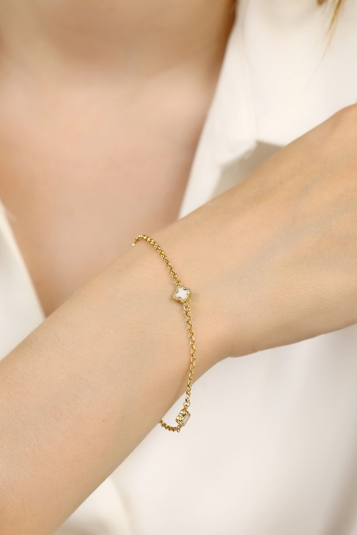 14 Ayar Altın Beyaz Üç Yoncalı Bileklik 14 Ayar Altın Beyaz Üç Yoncalı Bileklik DG43810 تک سایز