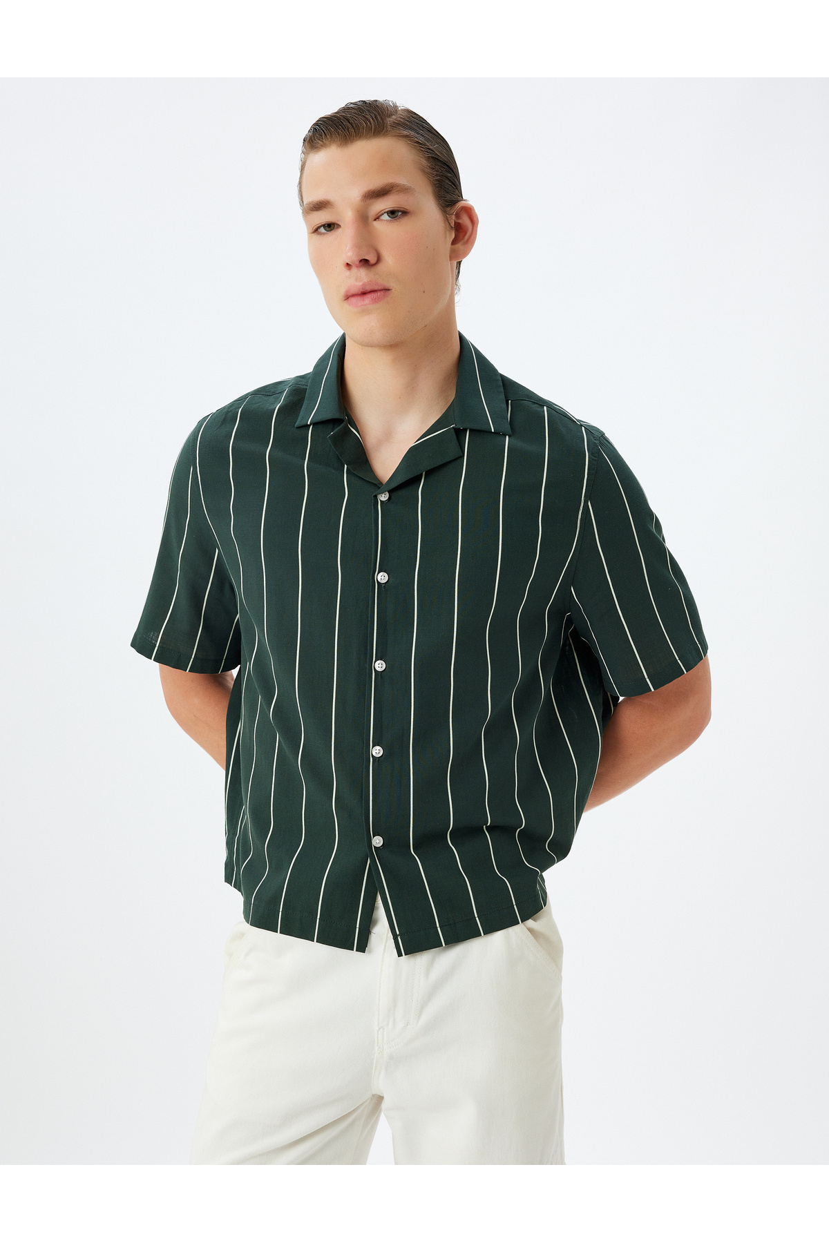 Devrik Yaka Regular Fit Pamuklu Kısa Kollu Gömlek Devrik Yaka Regular Fit Pamuklu Kısa Kollu Gömlek 5WAM60136HW 2XL