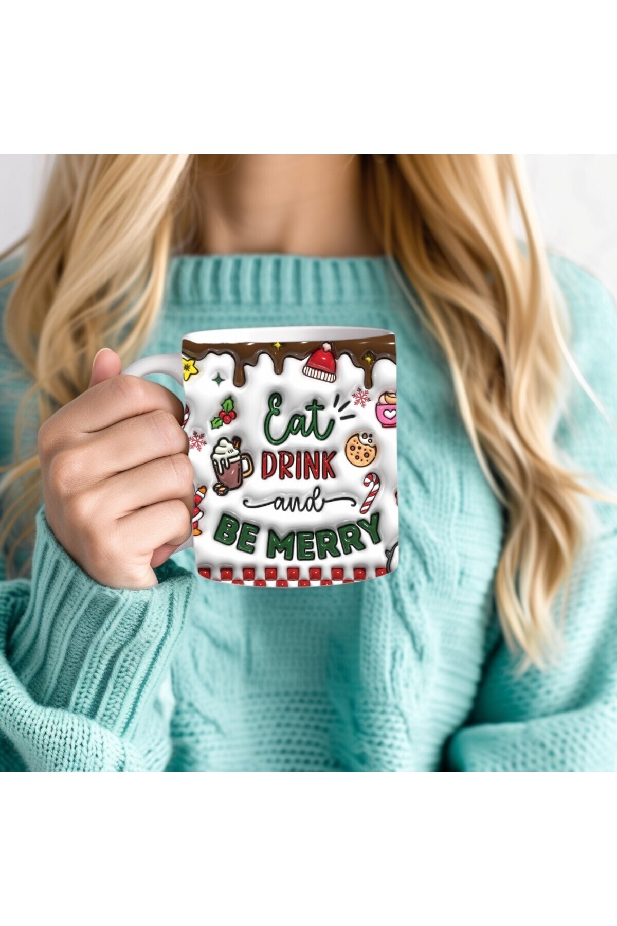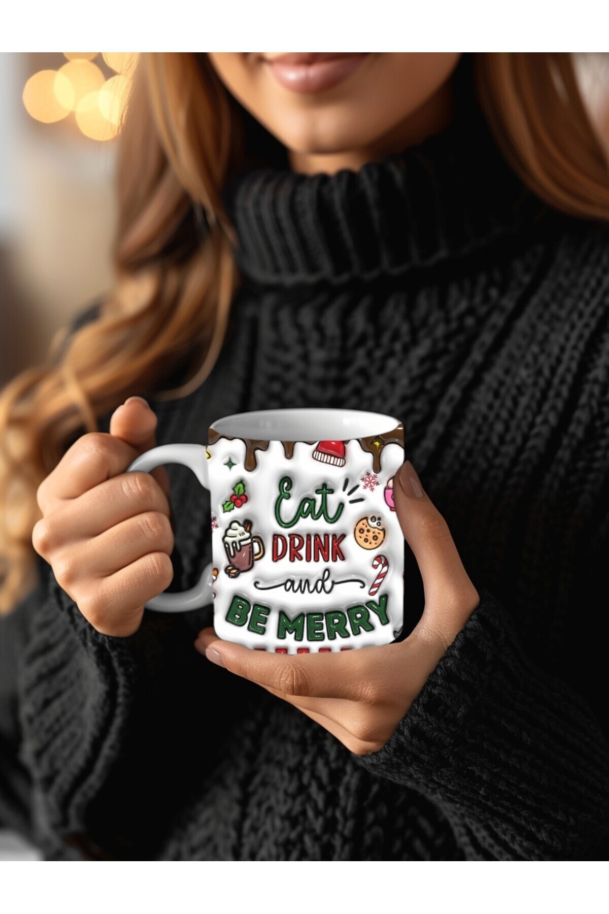 Ye İç Ve Mutlu Ol Baskılı 3D Tasarım Seramik Kupa Mug - Hediyelik Kupa Bardak Ye İç Ve Mutlu Ol Baskılı 3D Tasarım Seramik Kupa Mug - Hediyelik Kupa Bardak merryx1 تک سایز