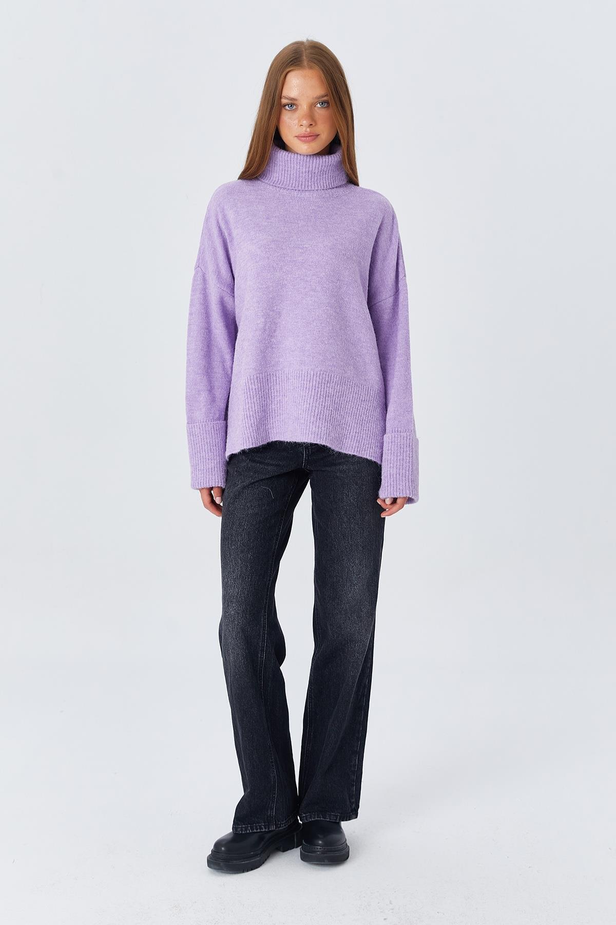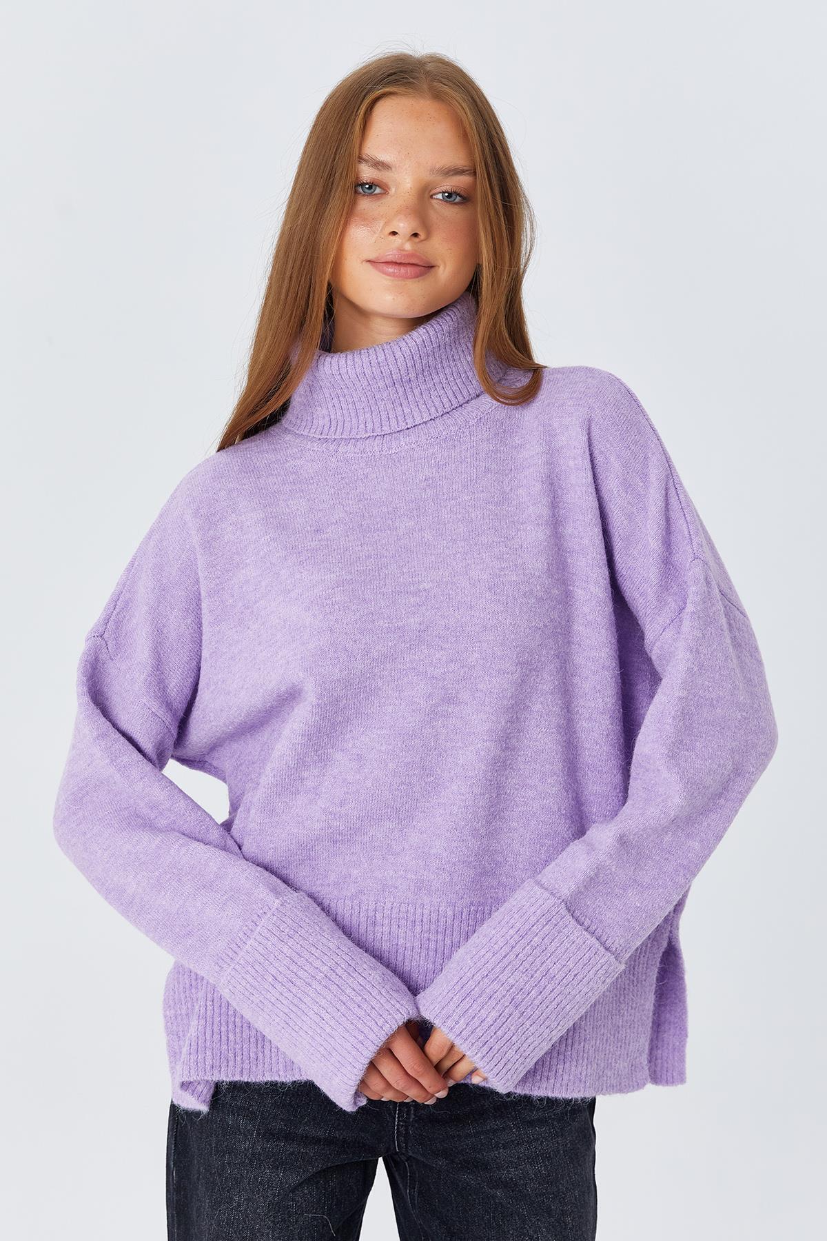 6828 Kadın Double Kol Balıkçı Triko Kazak Lila 6828 Kadın Double Kol Balıkçı Triko Kazak Lila K24KZK6828 Standart