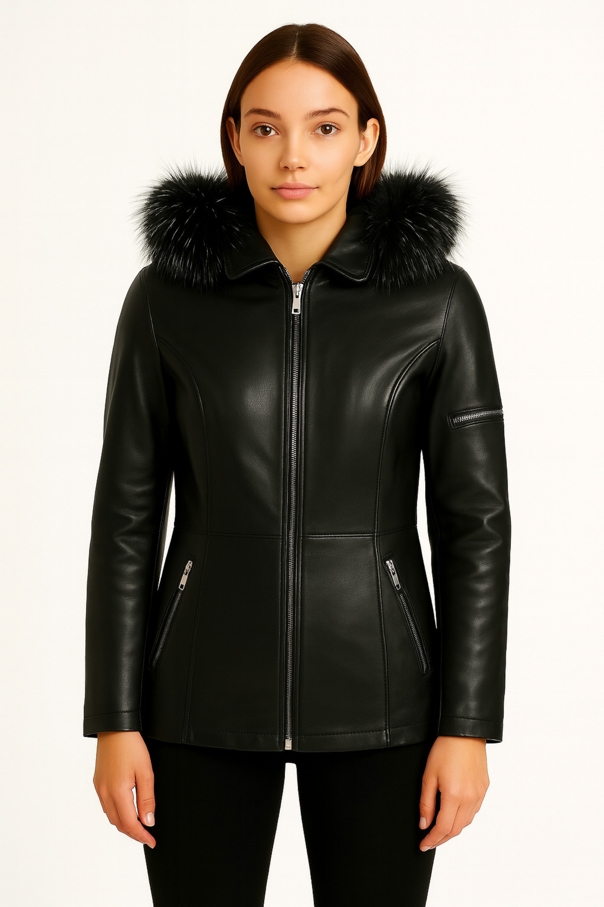 Duarte Hakiki Deri Siyah Deri Mont Duarte Hakiki Deri Siyah Deri Mont MELİSSA KISA 3XL