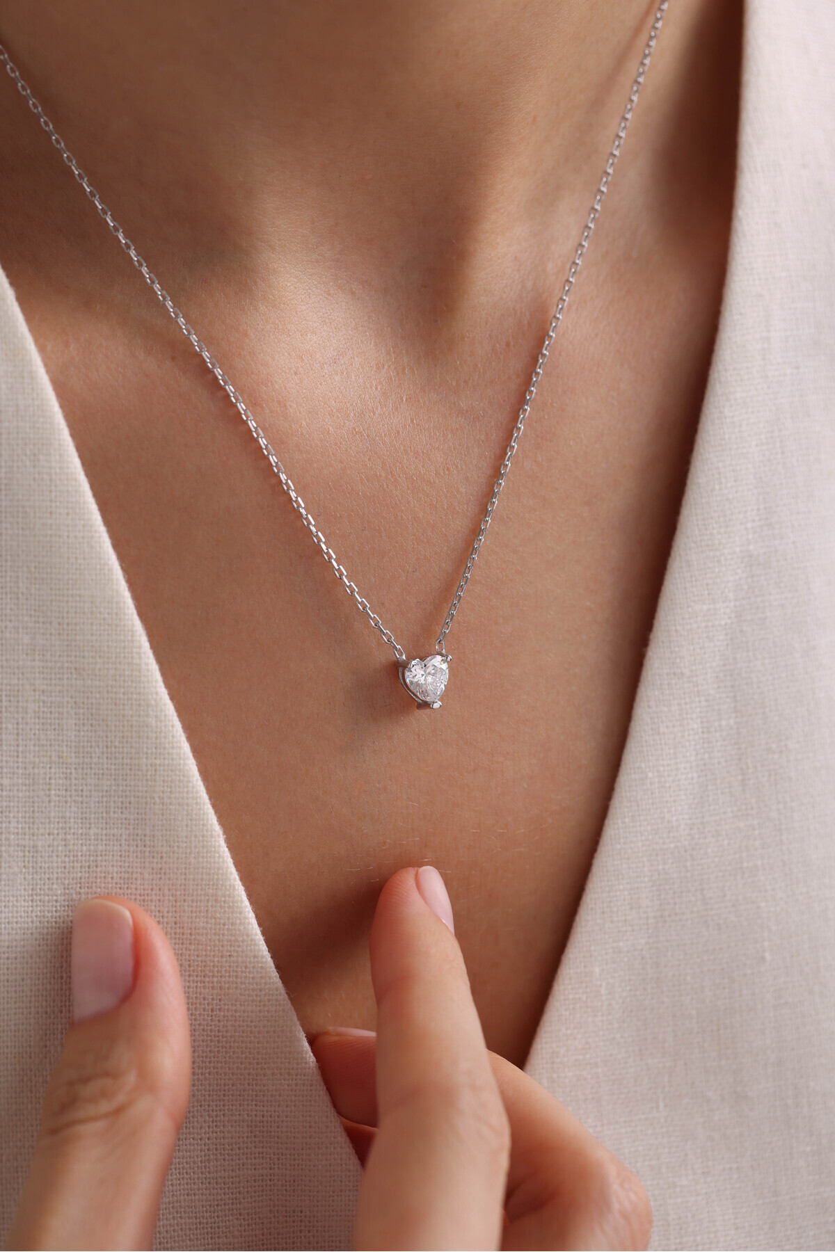 925 Ayar Gümüş Rodyum Kaplama Minimal Beyaz Taşlı Kalp Kolye 925 Ayar Gümüş Rodyum Kaplama Minimal Beyaz Taşlı Kalp Kolye NRZ1000016 تک سایز