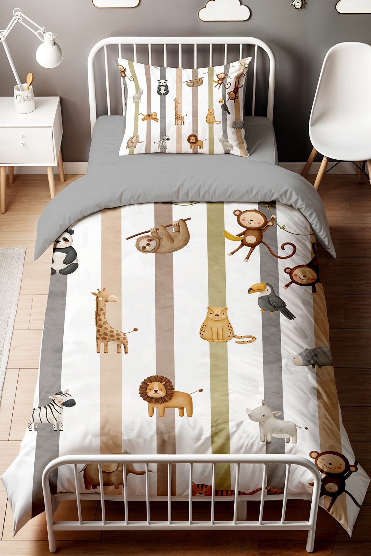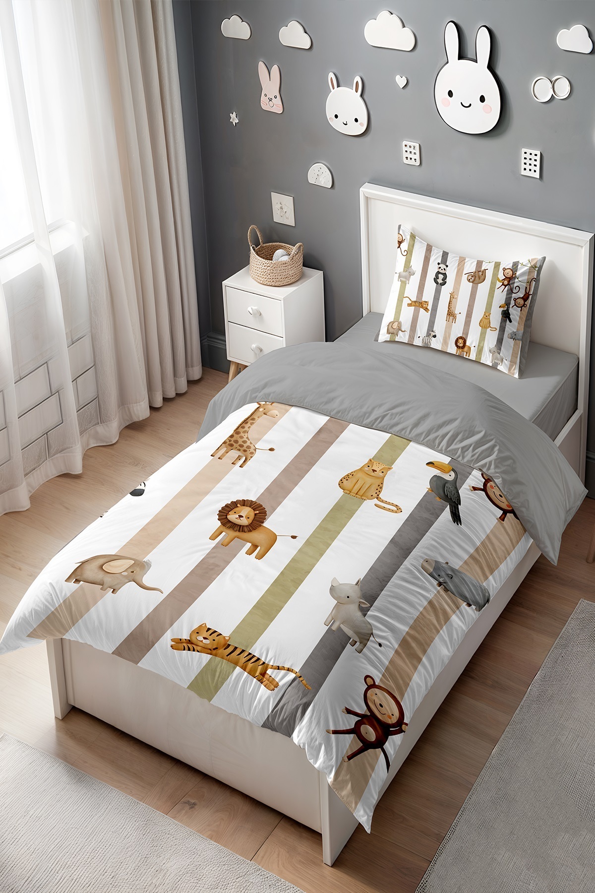 Çizgiler ve Hayvanlar Desenli Tek Kişilik Bebek Çocuk Nevresim Seti Çizgiler ve Hayvanlar Desenli Tek Kişilik Bebek Çocuk Nevresim Seti evnev00733 تک سایز